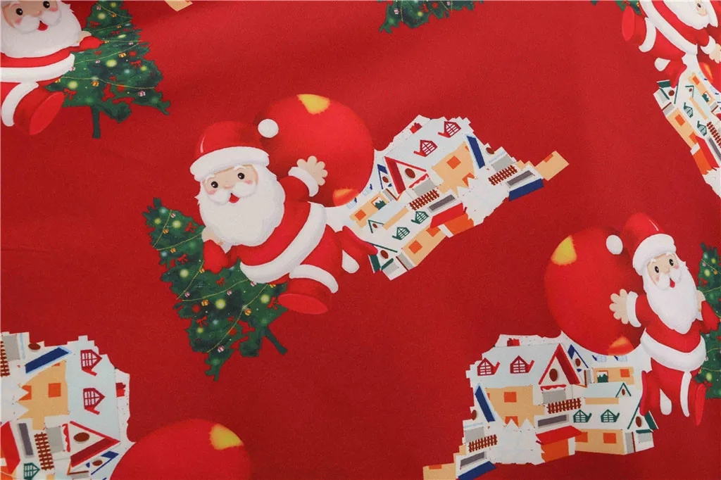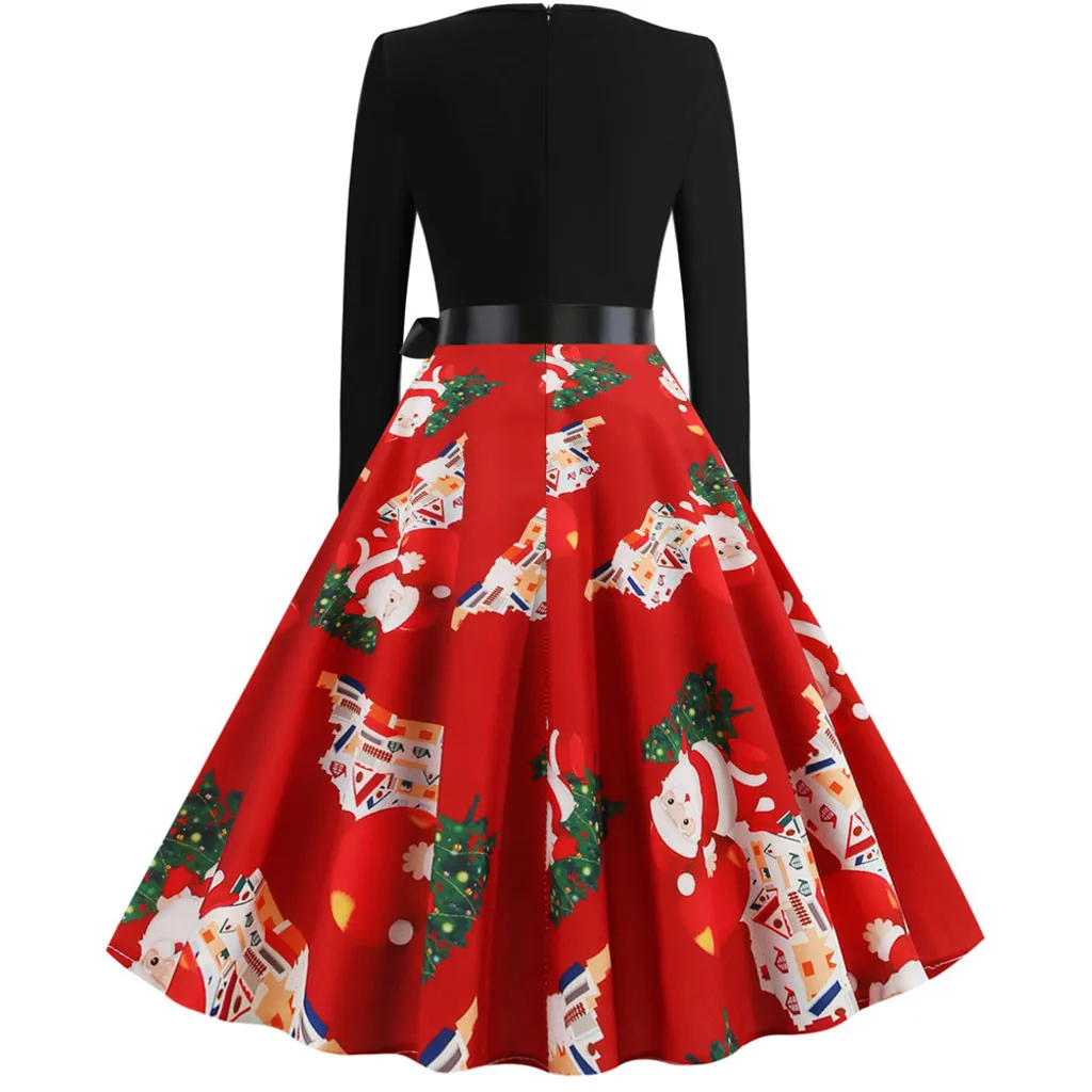 Women Vintage Long Sleeve Christmas 1950s Housewife Evening Party Prom Dress