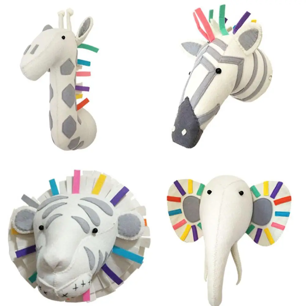 Животные, слон, олень, Зебра, кролик, голова тигра, настенное крепление, мягкие игрушки, декор для спальни, войлок, художественное оформление, настенные подвесные куклы, реквизит для фотографий