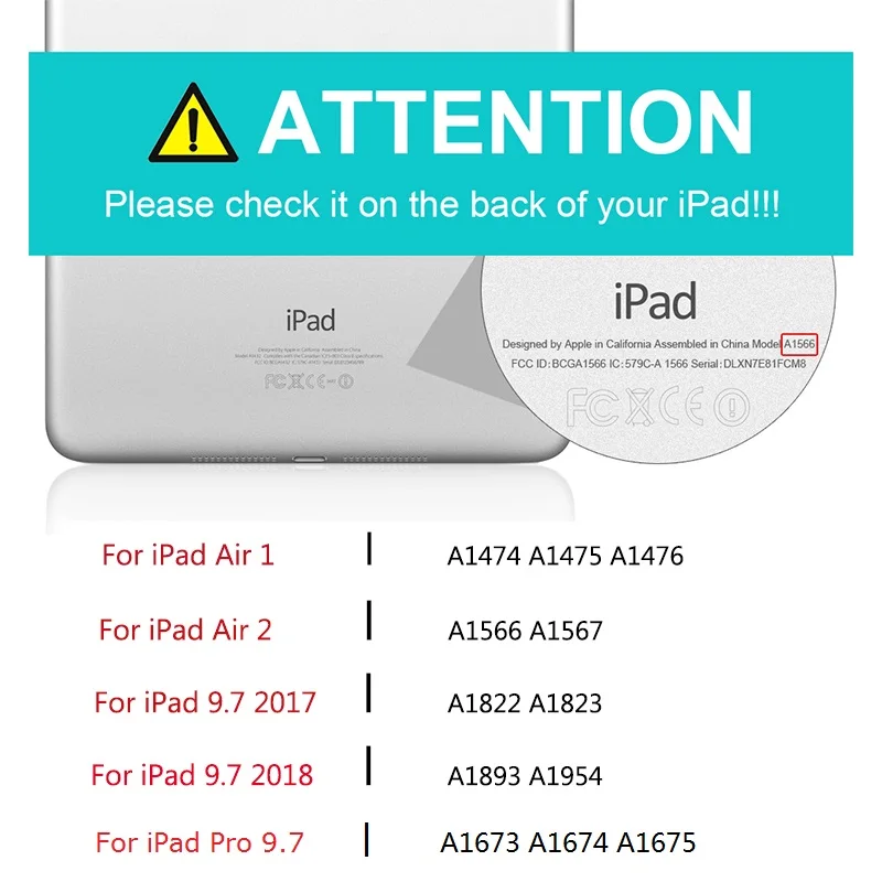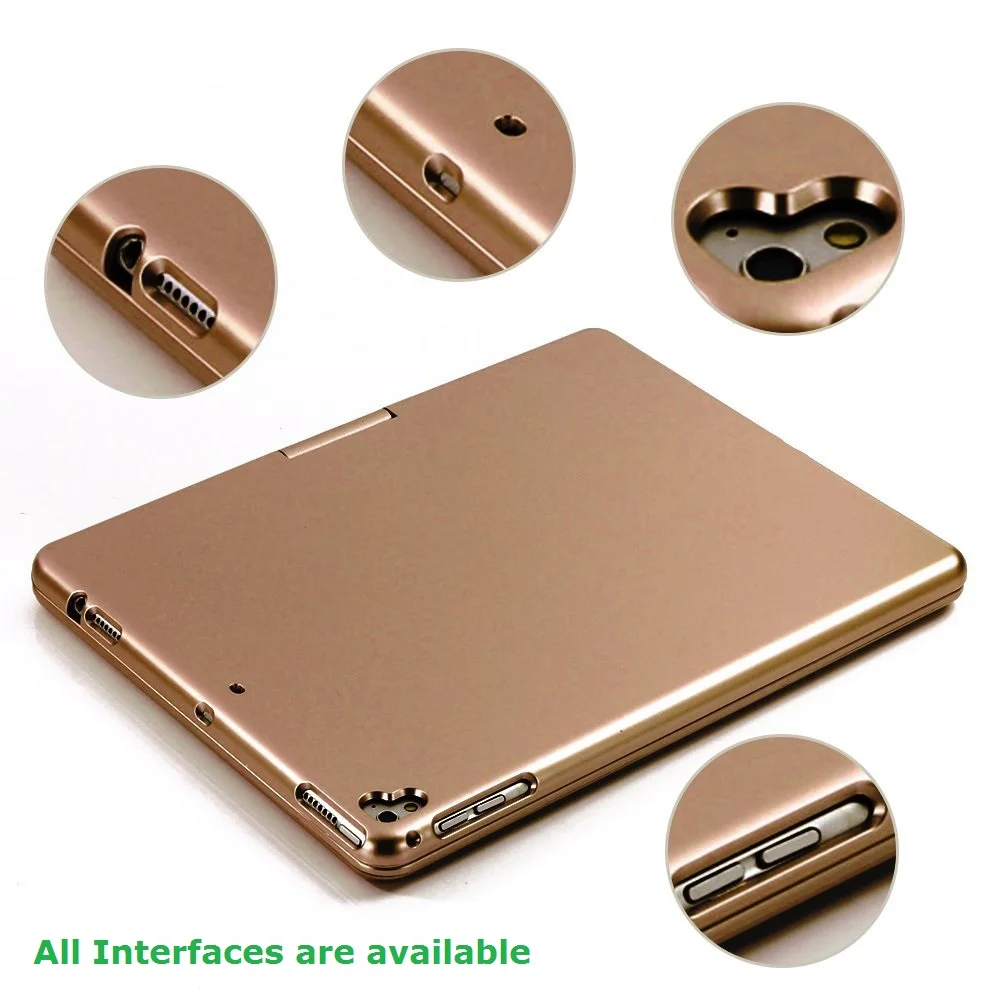 Перед покупкой. Пожалуйста, подтвердите ваши модели iPad. На задней панели планшета есть один номер, такой же как A1XXX. Пожалуйста, проверьте его и сравните с нашим Списком Особенности: 1. Его можно поворачивать на 360 градусов по горизонтали и по-разному, использовать под разными углами. 2. Высокое качество ножниц ABS, удобная кнопка с красочной подсветкой. 3. Легкий, легко носить с собой, и это превосходная экономичная bluetooth-клавиатура. Спецификация: Применимые модели: для iPad Air, для iPad Air2, для iPad Pro9.7, 2017 Новый iPad & 2018NEW iPad Версия Bluetooth: 4,0 Аккумулятор: встроенный 450mA полимерный литиевый аккумулятор Время зарядки: 1-2 часа Непрерывное рабочее время (без подсветки): 350 часов Непрерывное рабочее время (включение подсветки): 2-3 часа Расстояние использования: 10 м/32,81фт Тип клавиатуры: Беспроводная клавиатура Bluetooth Количество клавиш: 78 клавиш Материал защитной крышки: ABS Цвет: черный, золотой, розовое золото, серебристый Размер: 24,3X18,8X1,9 см/9,57X7,4X0,75"