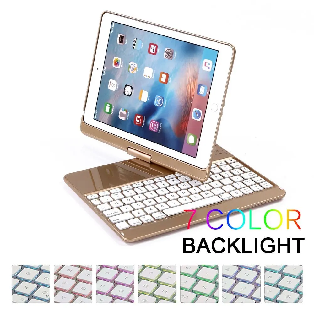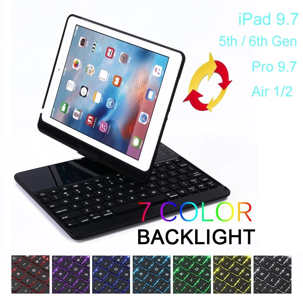 Вращающийся на 360 градусов чехол для iPad 2017 2018 Pro 9,7 Air 2 с клавиатурой 7 цветов с подсветкой беспроводной Blutooth для iPad 9,7 ''чехол для клавиатуры