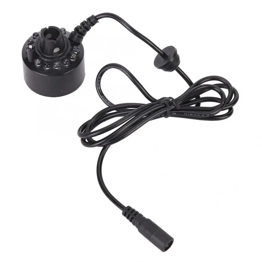 Black Aquarium 12 LED Light Ultrasonic Mist Maker Atomizer Water Fountain Pond Indoor Outdoor Fish Tank Supplies Accessory