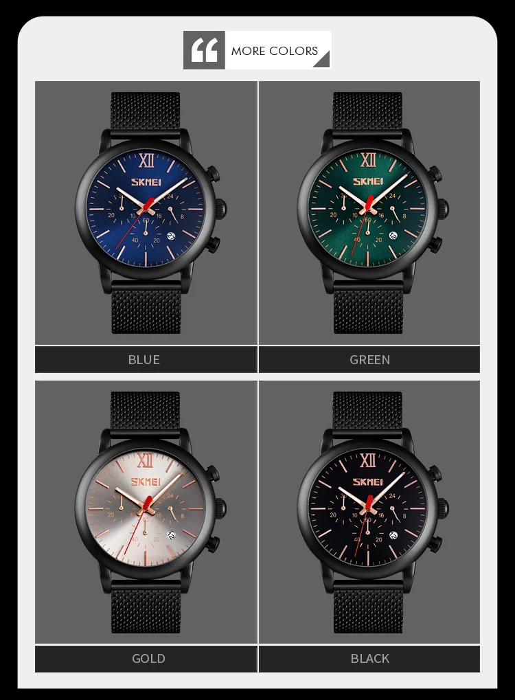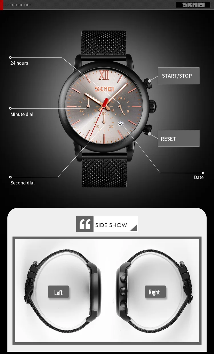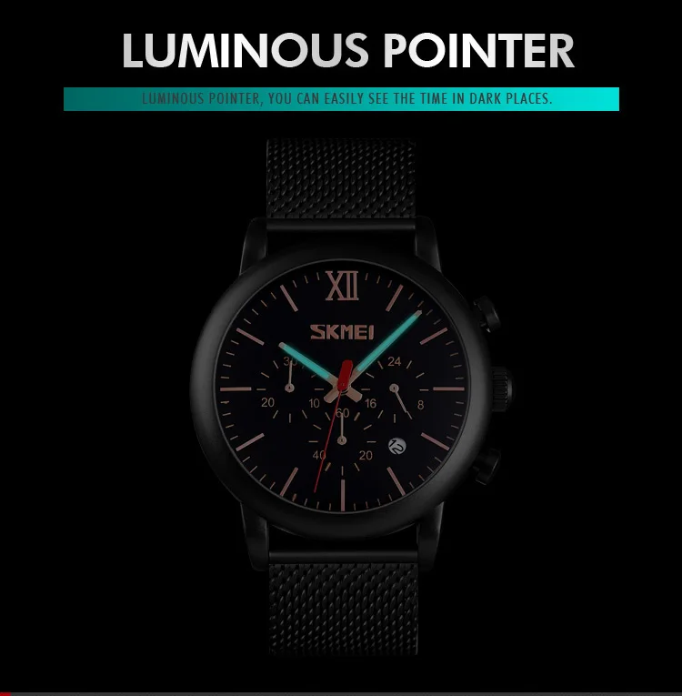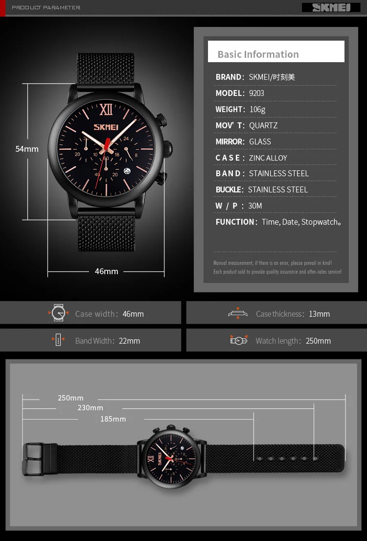 ▪Пол: мужчин и мужчин ▪Механизм: кварцевый механизм ▪Материал корпуса: цинковый сплав ▪Материал ремешка: нержавеющая сталь 304 ▪Тип пряжки: нержавеющая сталь ▪Диаметр циферблата: 46 мм ▪Чехол Толщина: 13 мм ▪Ширина ремешка: 22 мм ▪Длина браслета: 250 мм ▪Вес изделия: около 106 г ▪Глубина водонепроницаемости: 3 АТМ ▪Функции: Водонепроницаемость, Автоматическая Дата, светящиеся стрелки, ударопрочность, секундомер