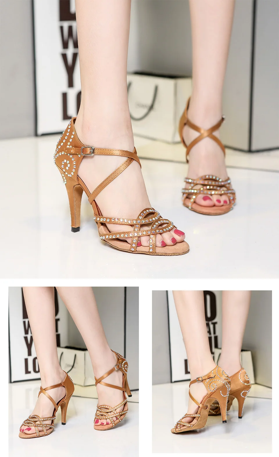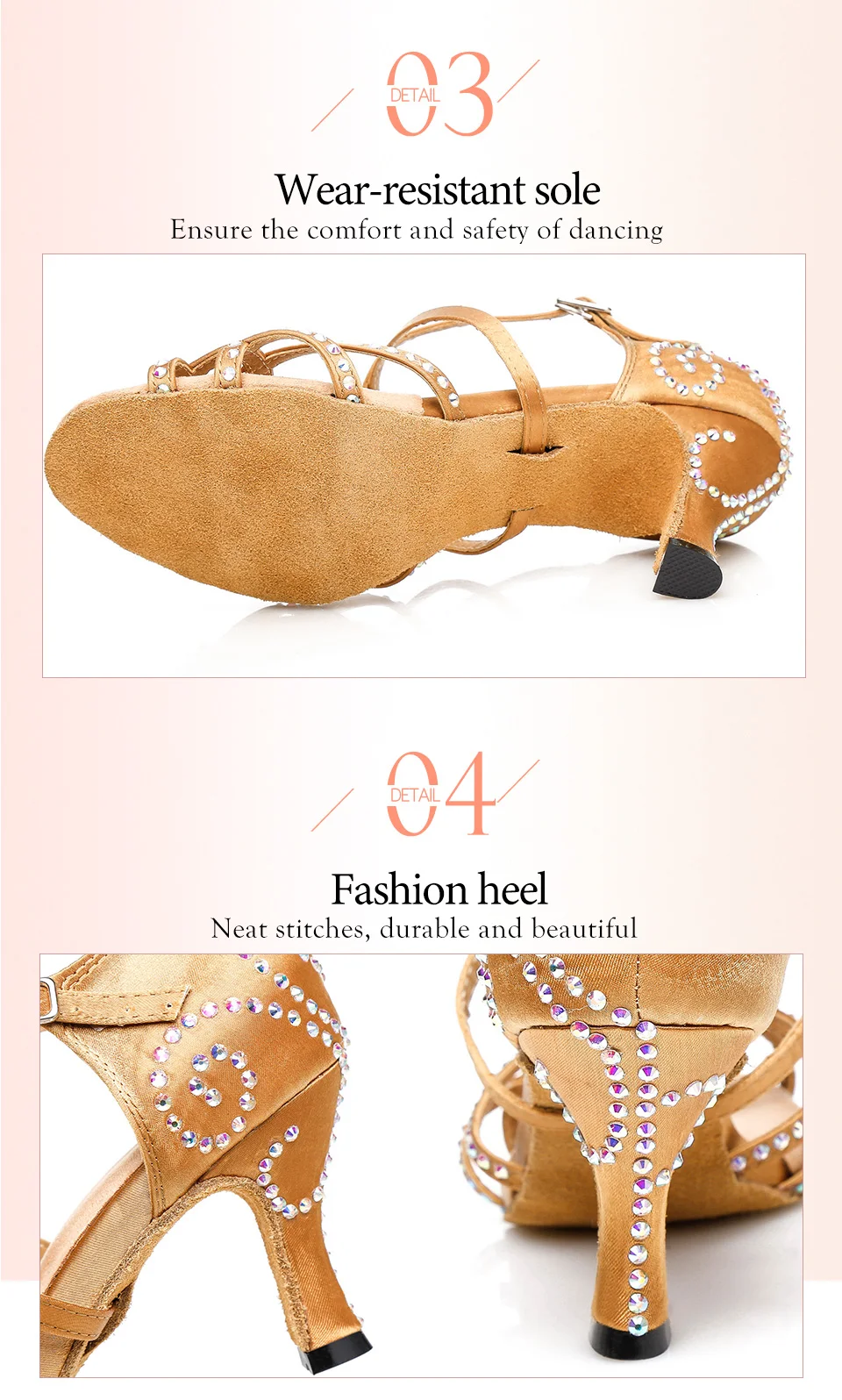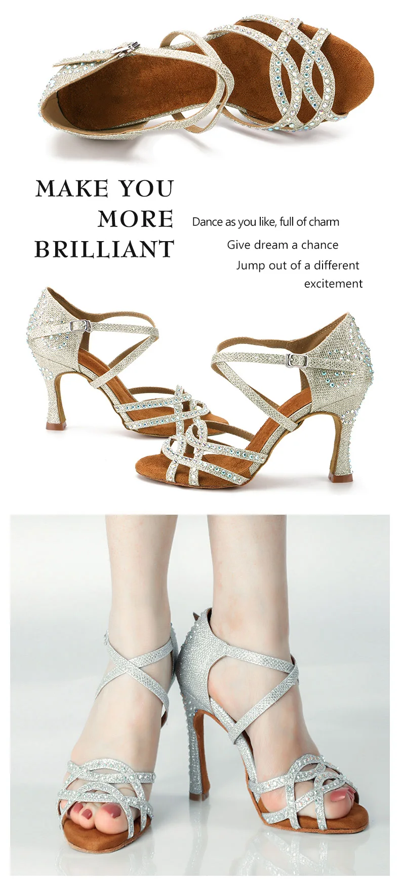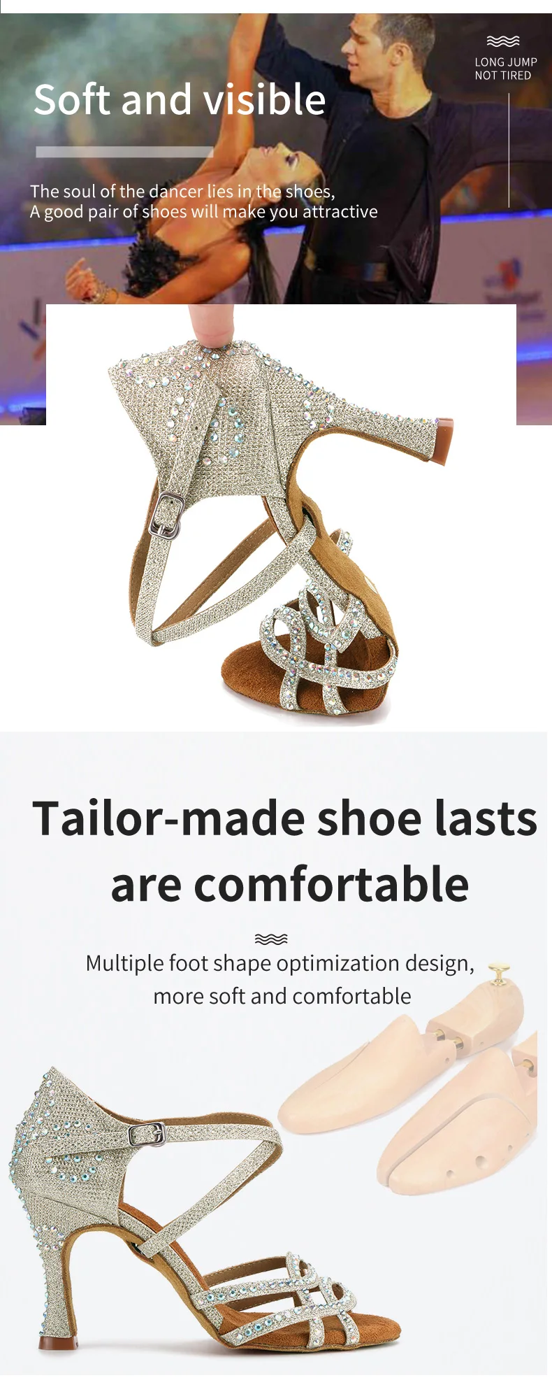 HROYL/Профессиональная женская обувь для латинских танцев; Сандалии для бальных танцев; Новинка 2021 года; Обувь для сальсы с кристаллами; Обувь для танго; Обувь для танцев на каблуках; Женская обувь