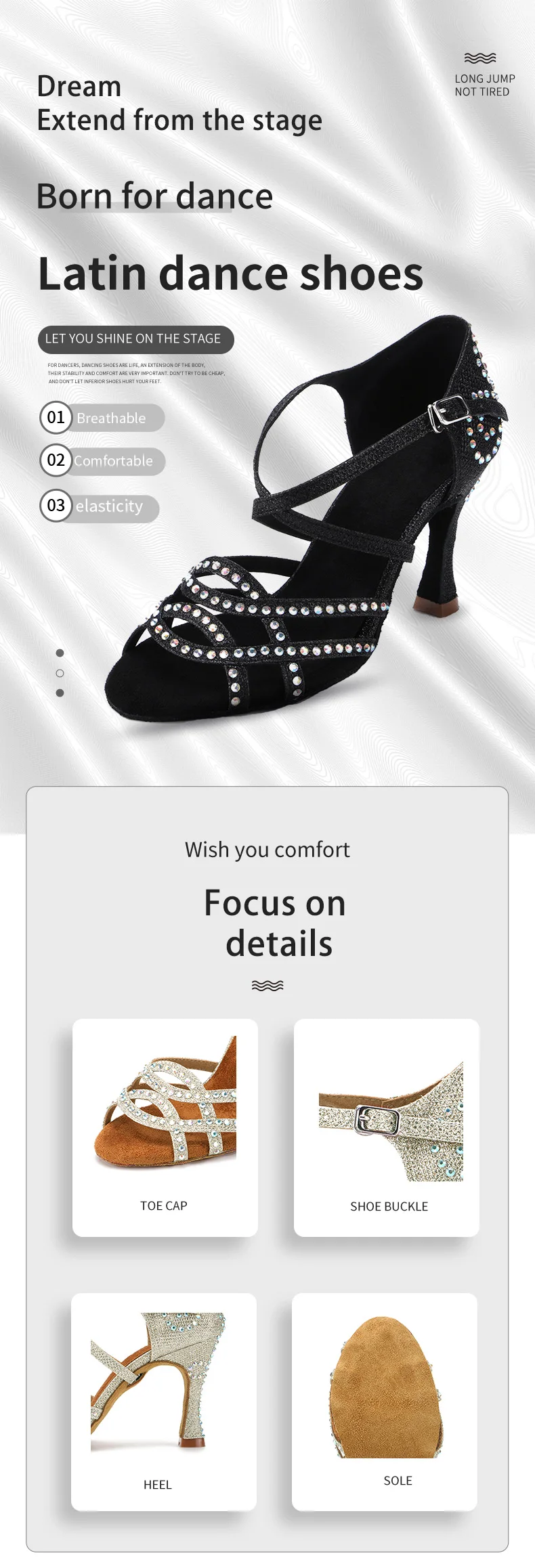 Применимые люди: женщины, девочки, дамы, учителя танцев, ученики танцев, танцевальные тренеры. Применение: танцевальная обувь подходит для латинских танцев, сальсы, танго, чаши, тренировок и выступлений. Вы также можете носить его во многих случаях, таких как: танец в помещении для досуга, практика, соревнования, свадьба и т. Д.