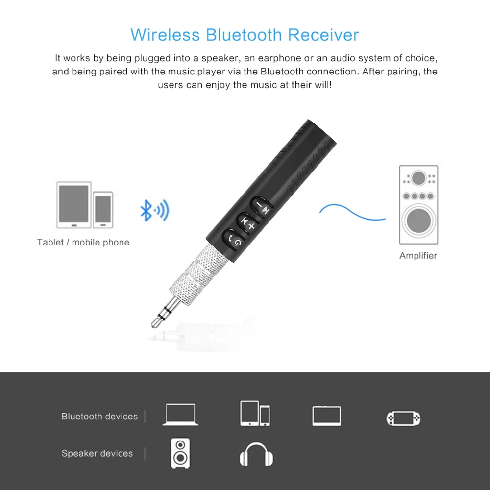 Простота в эксплуатации: Просто подключите динамик/гарнитуру к нашему устройству, немедленно превратите динамик/гарнитуру в модный беспроводной bluetooth-динамик/гарнитуру.