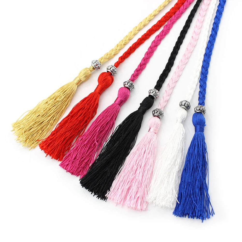 Этнический женский плетеный пояс с узлом и кисточками, обтягивающий тонкий пояс с веревкой