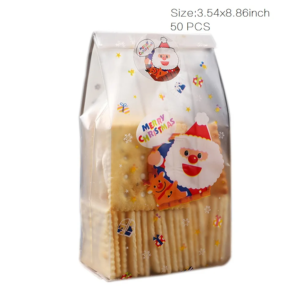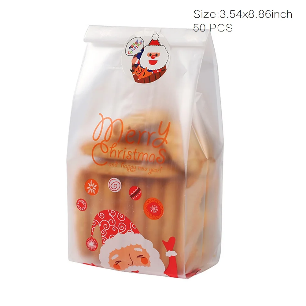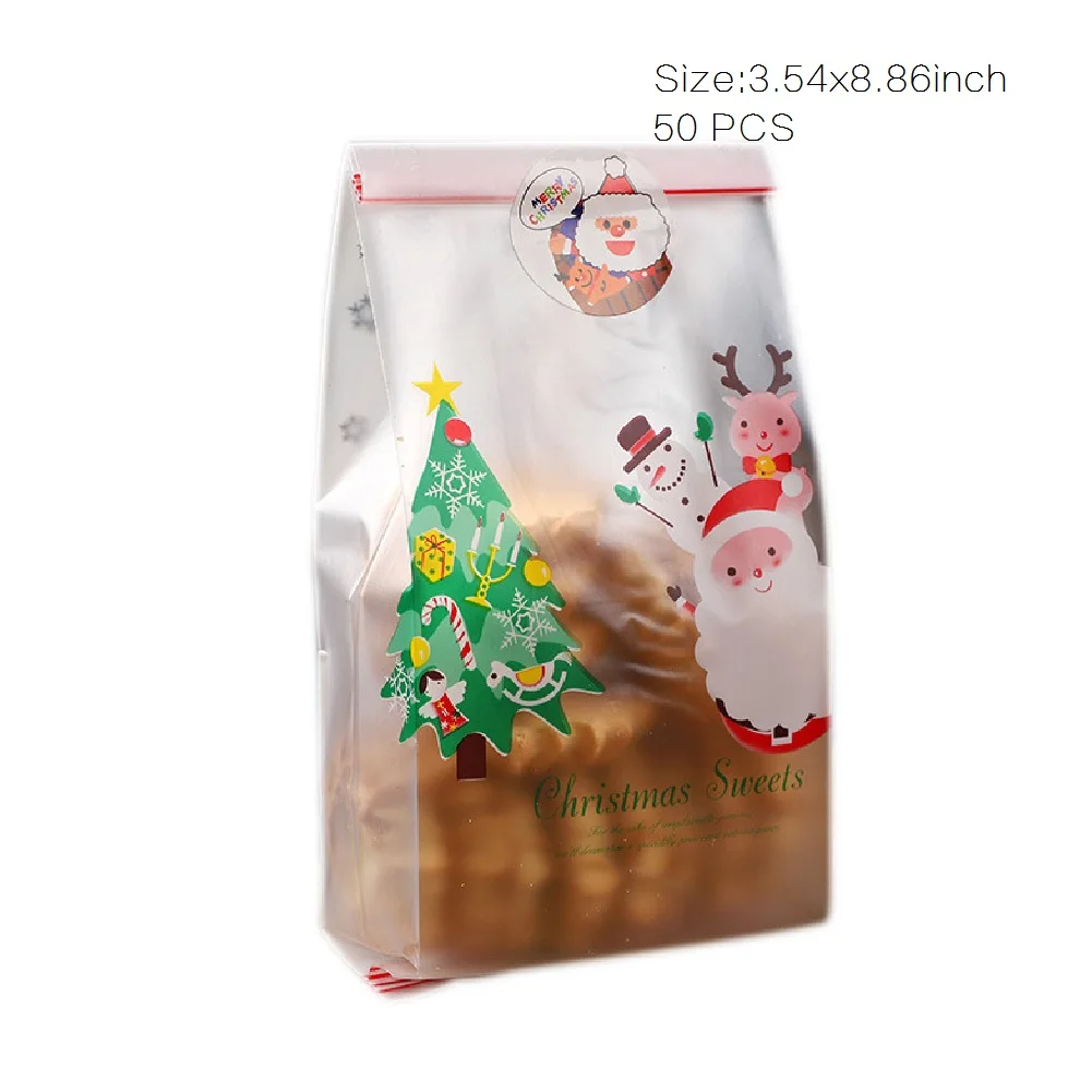 Название продукта: 50 штук рождественские сумки для конфет с замком-молнией подарочные упаковочные сумки рождественские полупрозрачные сумки для печенья вечерние подарочные принадлежности