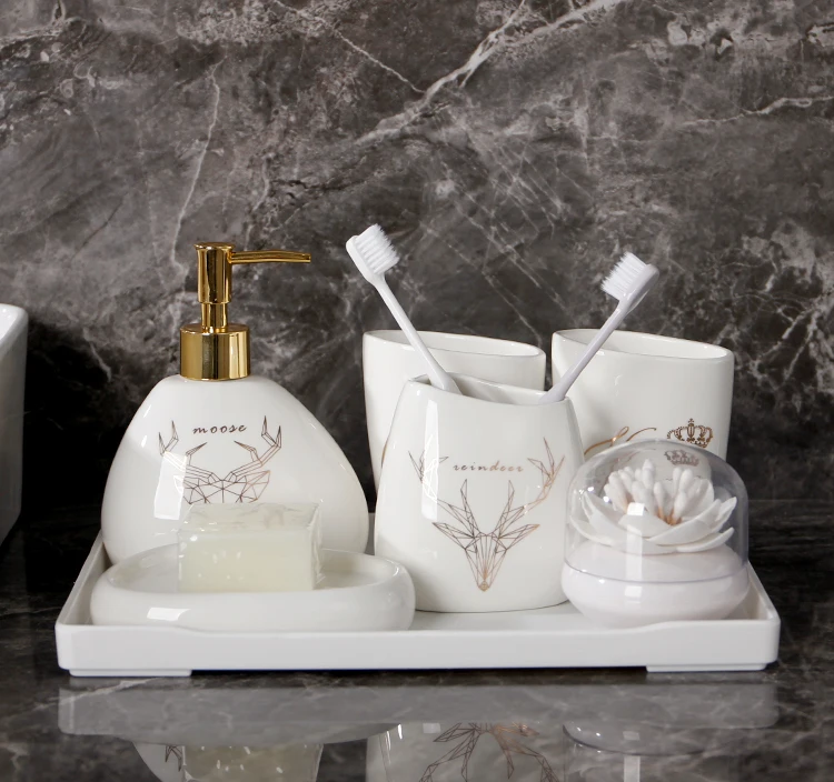 Животные Сантехника Пять штук керамическая чашка для полоскания рта Золотой, геометрической формы Антлер набор для ванной свадебный подарок на праздник