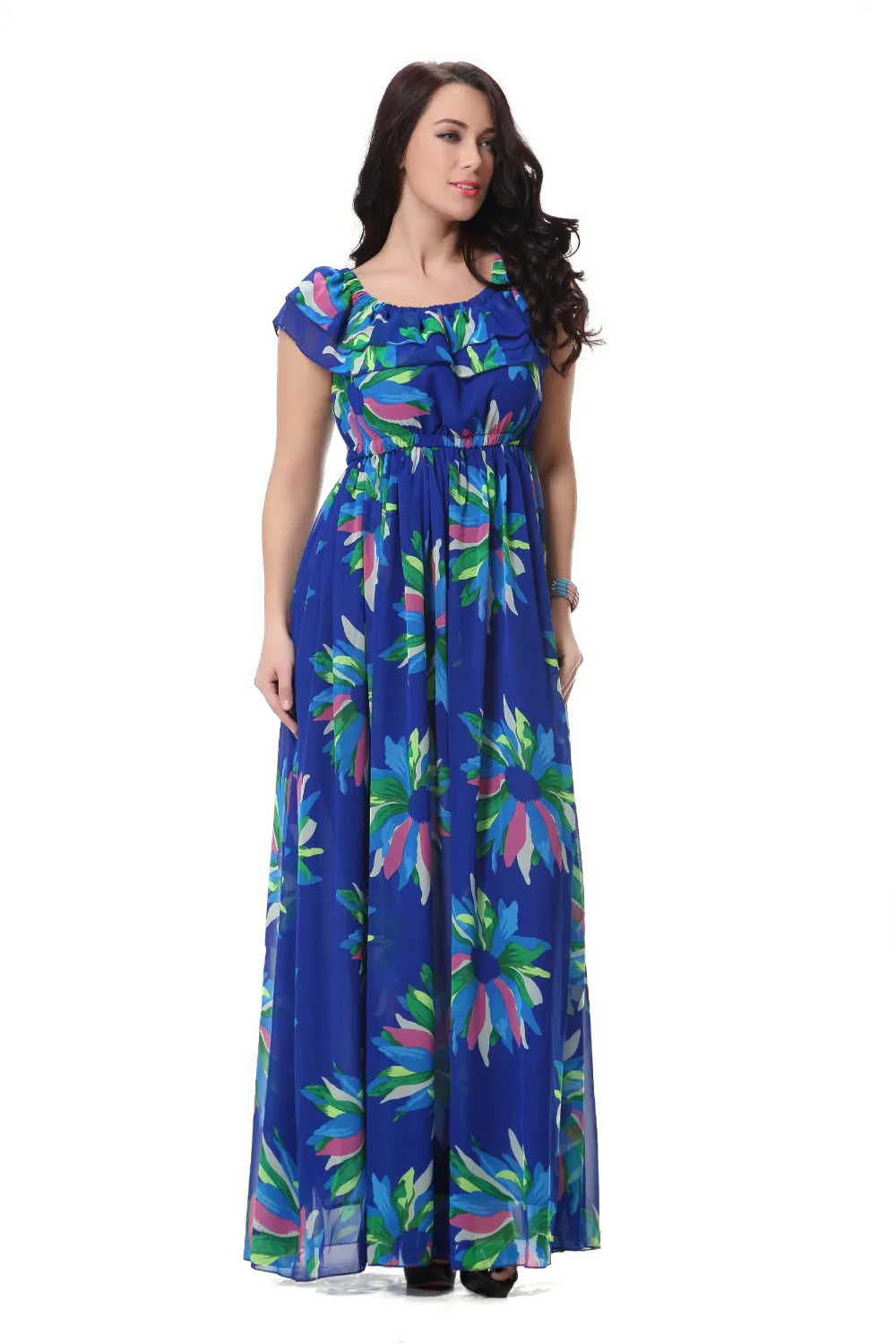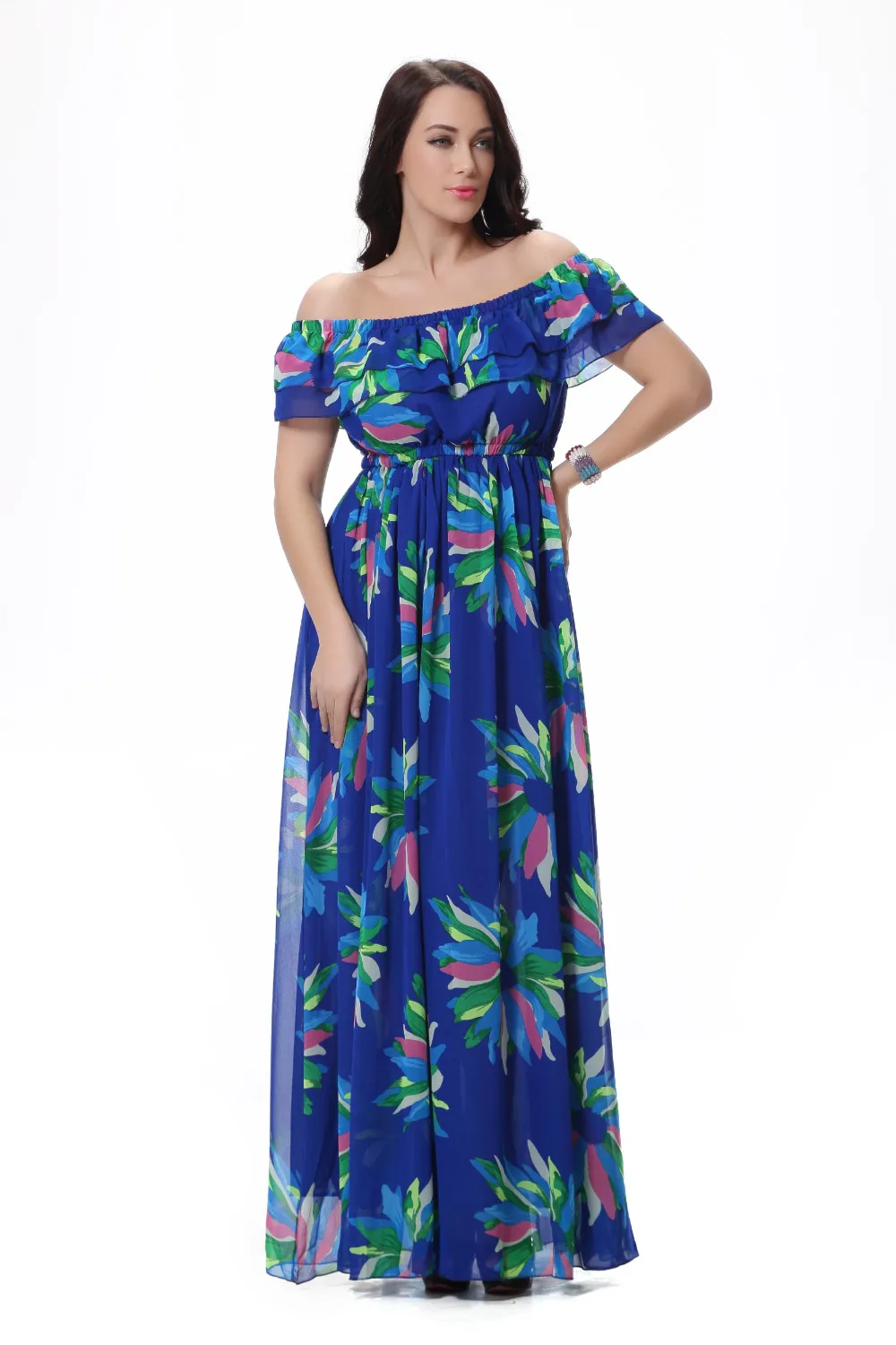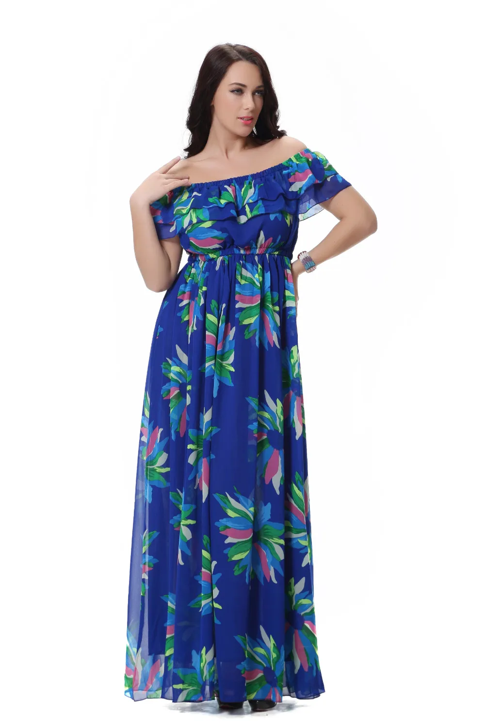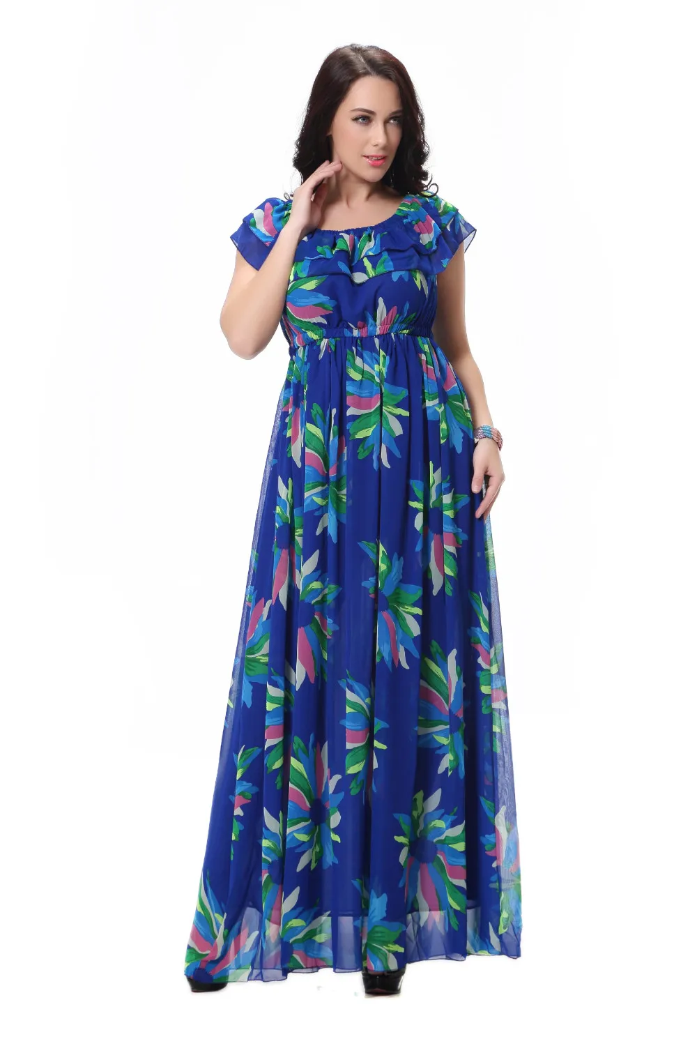 Женское шифоновое платье-макси Moda Mujer, летнее платье с вырезом лодочкой, без рукавов, с синим цветочным принтом, размера плюс 6XL