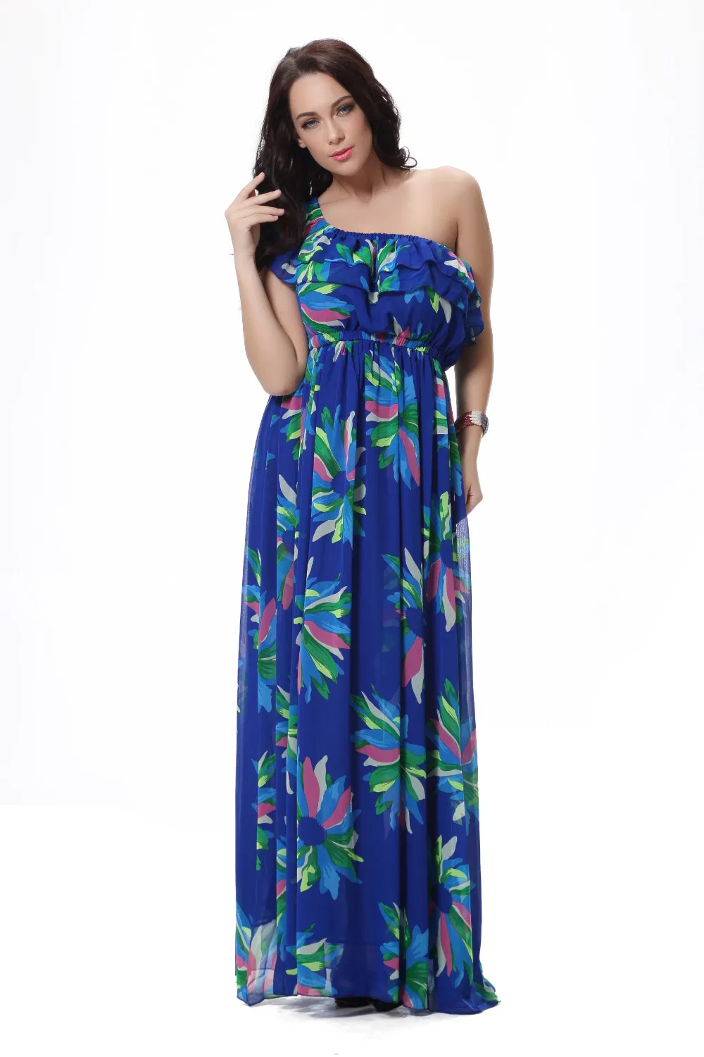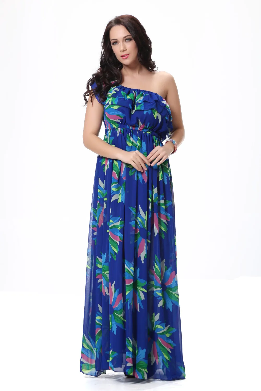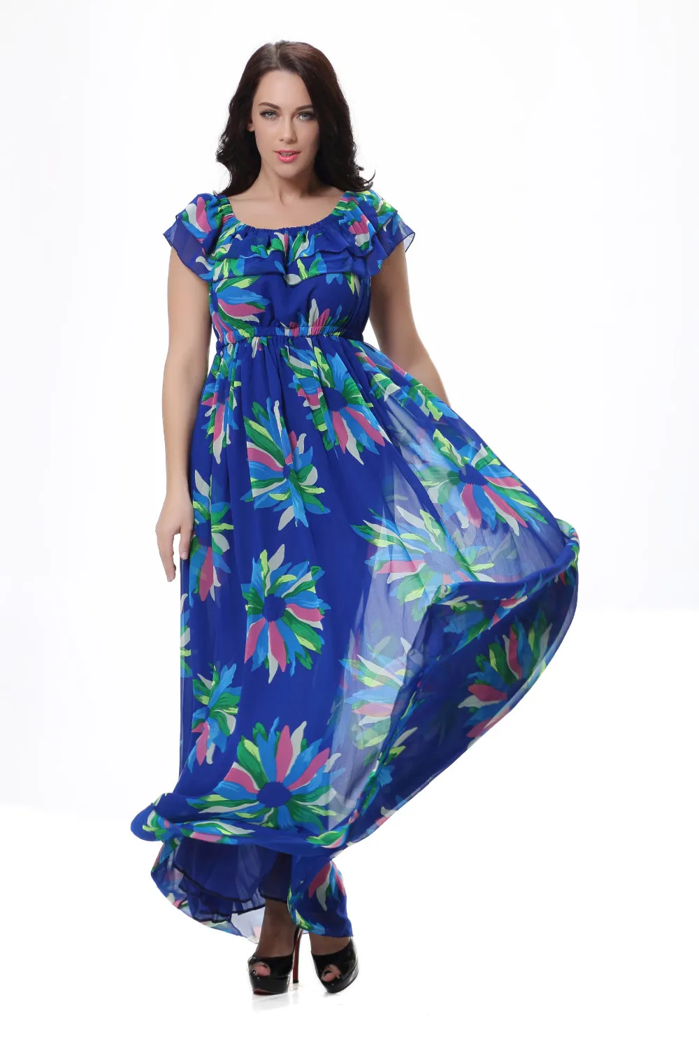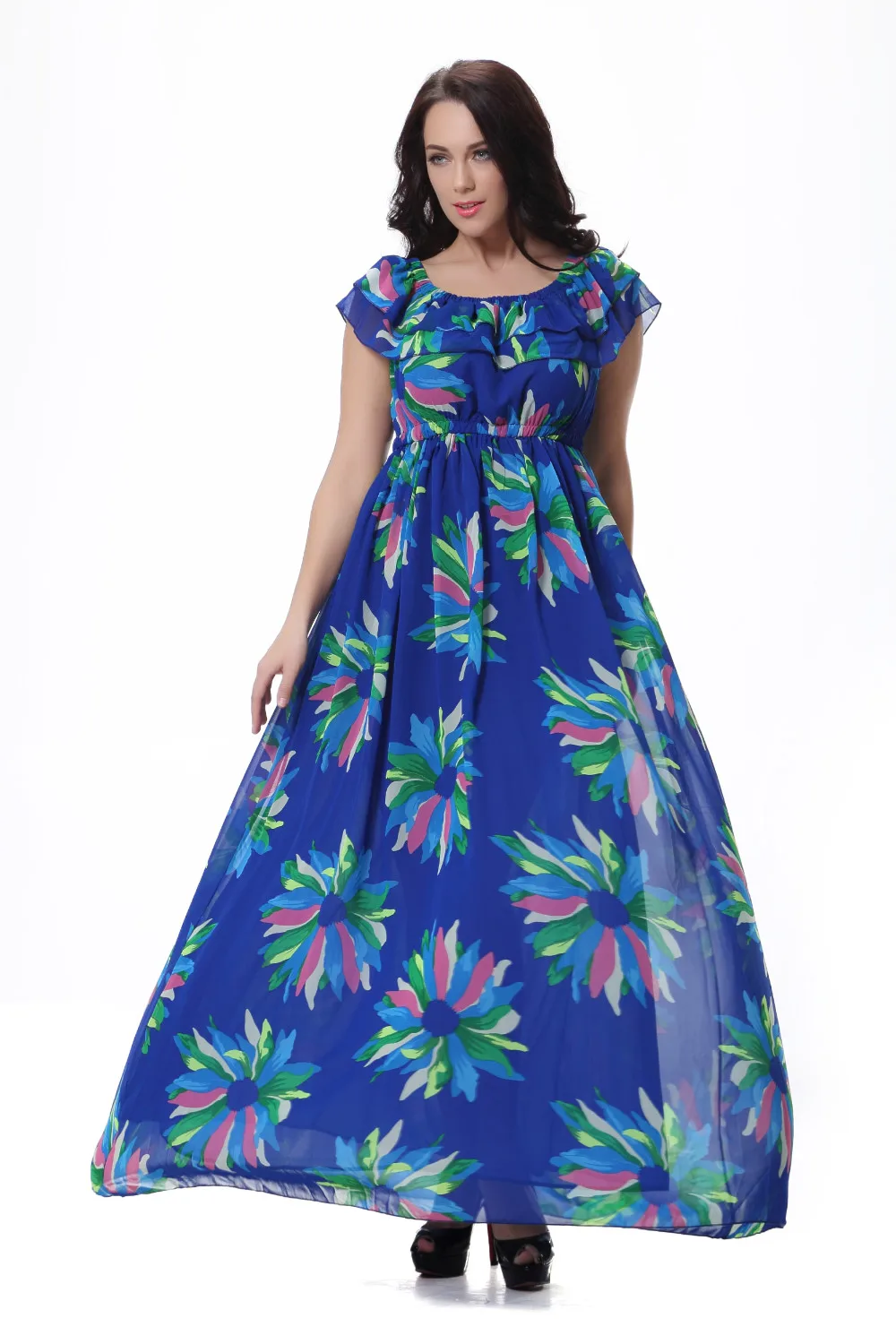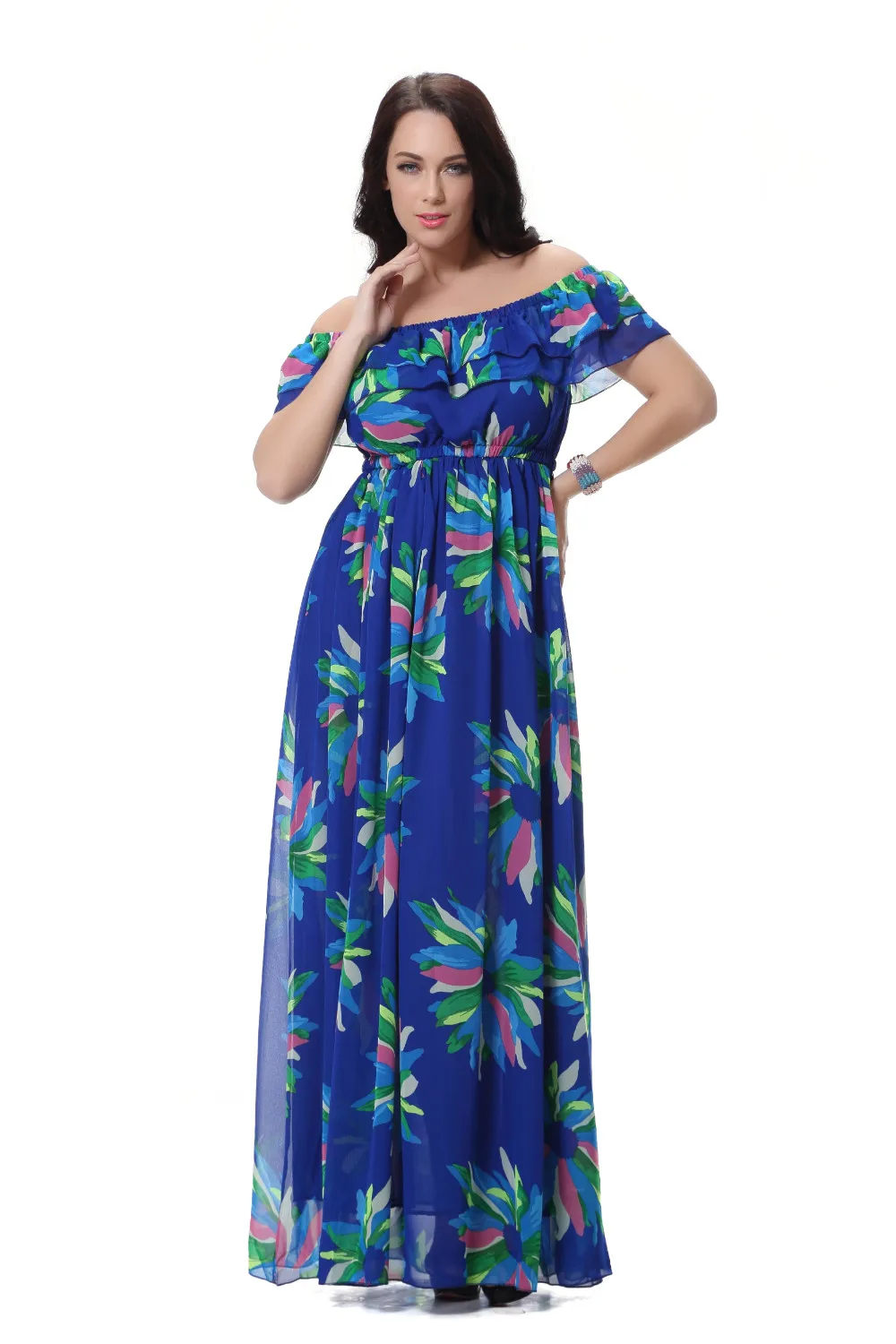 Женское шифоновое платье-макси Moda Mujer, летнее платье с вырезом лодочкой, без рукавов, с синим цветочным принтом, размера плюс 6XL