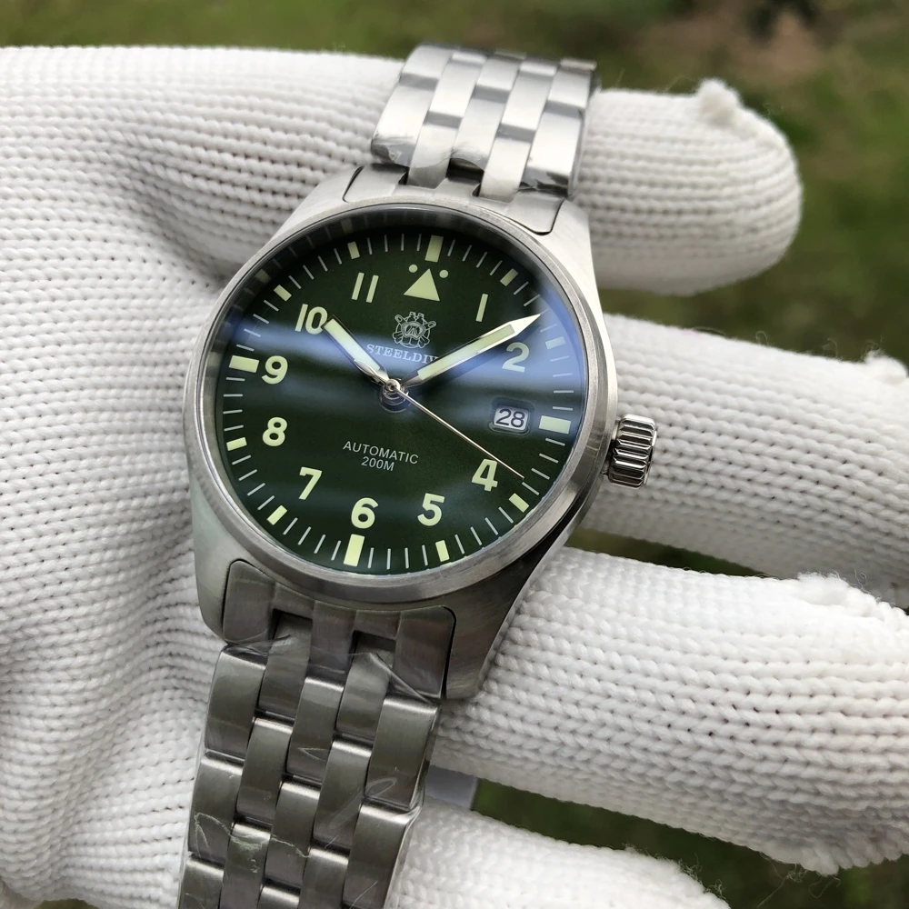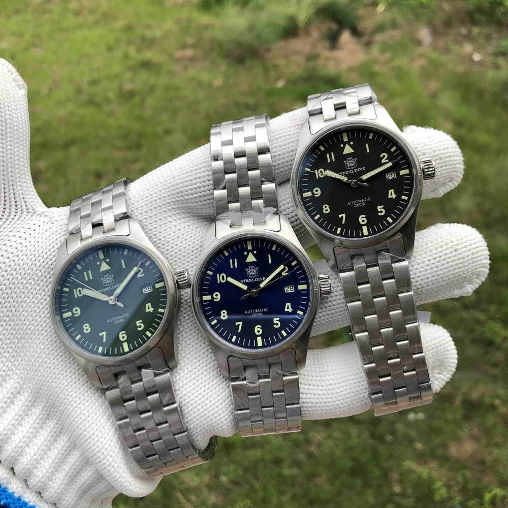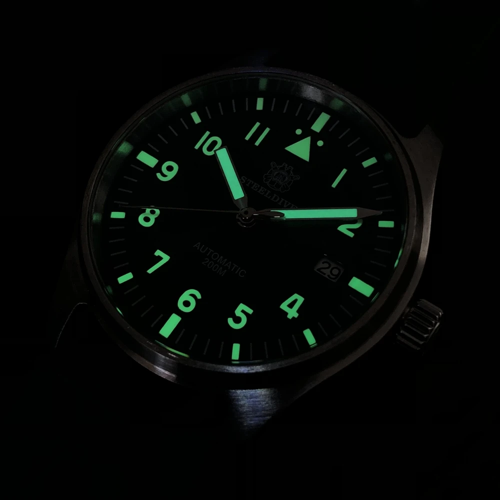 Мужские автоматические часы STEELDIVE Pilot NH35A с сапфиром, механические наручные часы, мужские часы C3, светящиеся часы с самозаводом, часы Pilot Mark 9