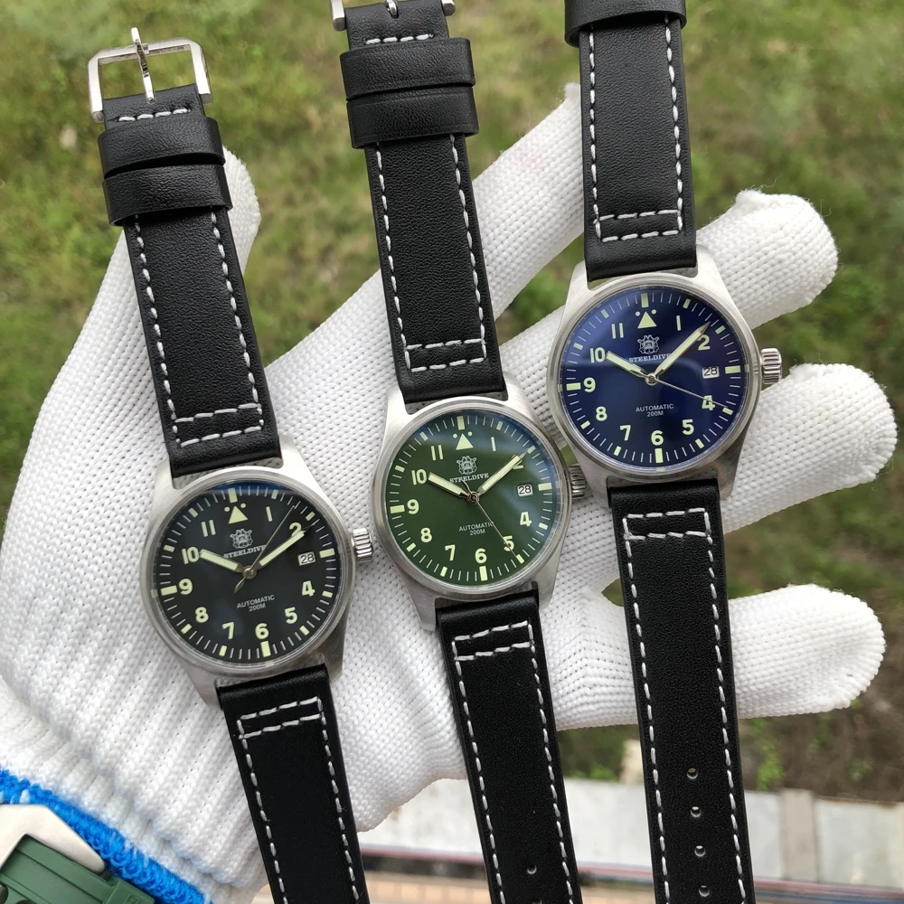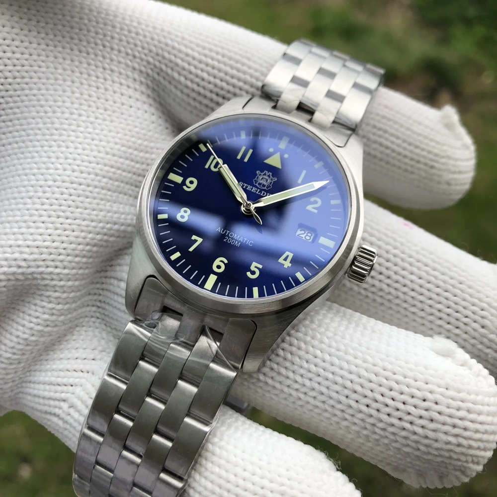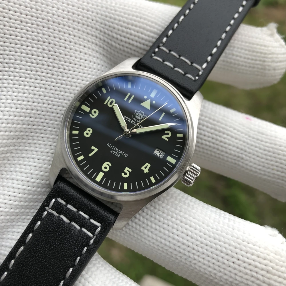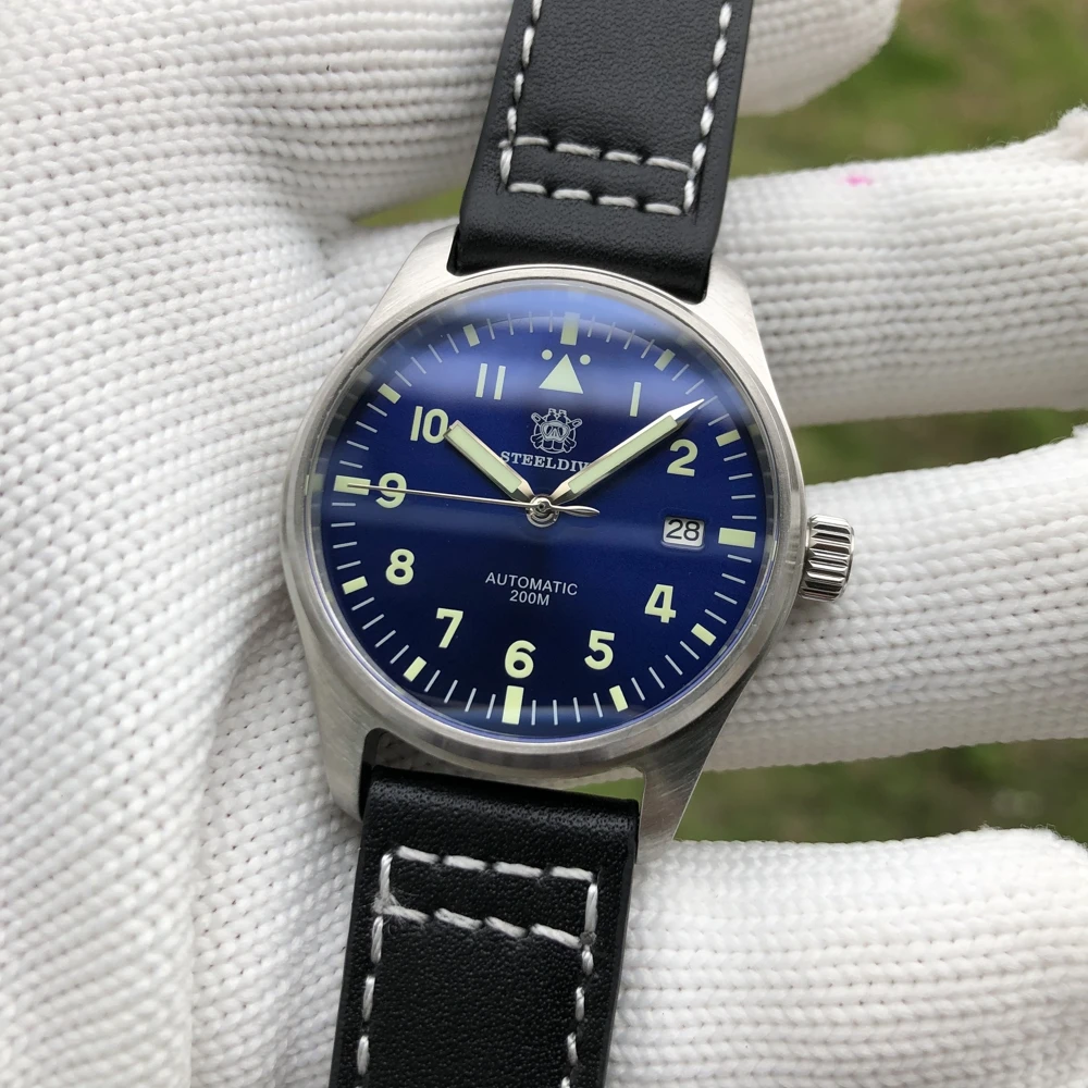 Мужские автоматические часы STEELDIVE Pilot NH35A с сапфиром, механические наручные часы, мужские часы C3, светящиеся часы с самозаводом, часы Pilot Mark 9