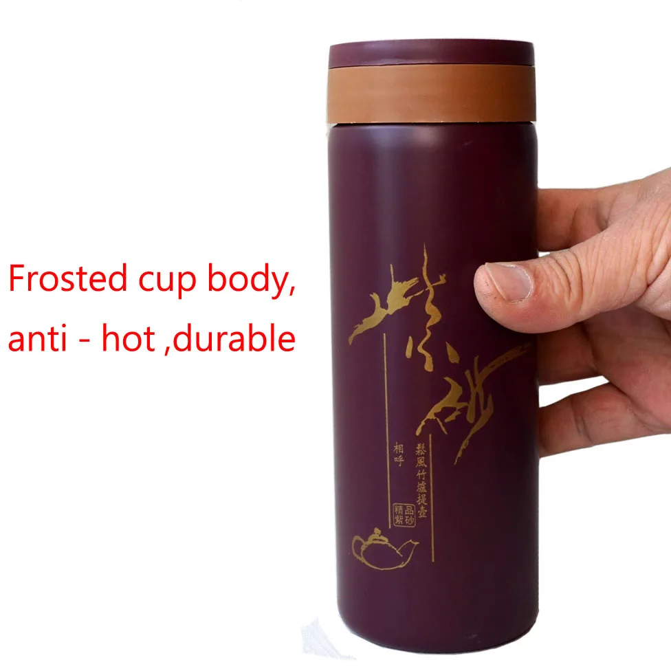 Изоляционная чайная чашка, 240 мл, китайская исиновая фиолетовая глина, подстежка из нержавеющей стали, чашка для чая, сохраняющая тепло, кружки для путешествий
