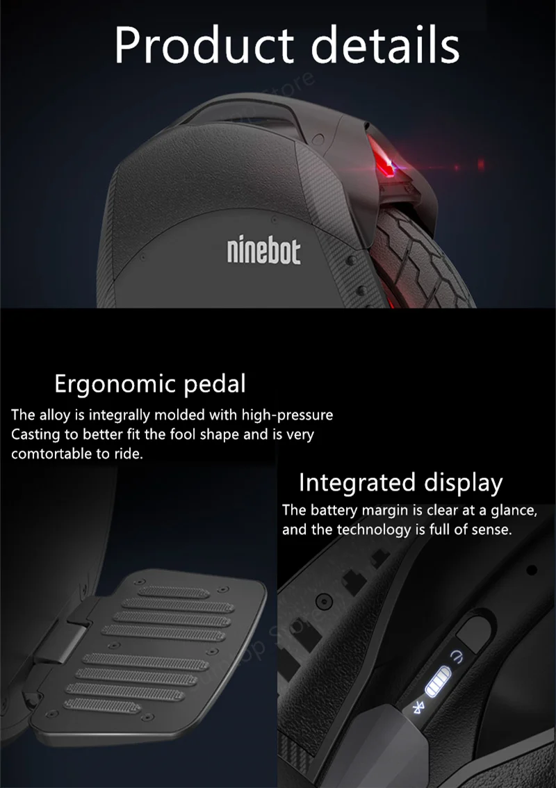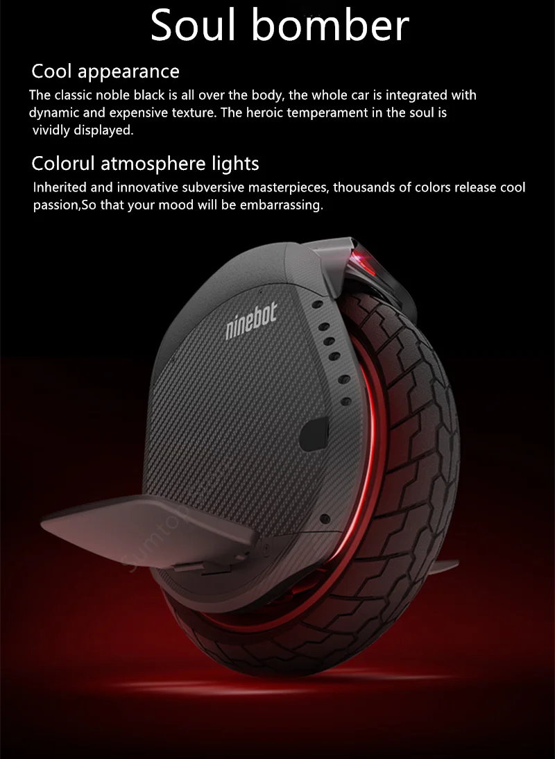 Top-of-The-line Ninebot One Z10 с максимальной мощностью двигателя 1800 Вт позволяет путешествовать со скоростью до 45 км в час. Емкость аккумулятора до 995 Вт-ч предназначена для вождения в 80-100 км. Подъем до 25 градусов также не является помехой.