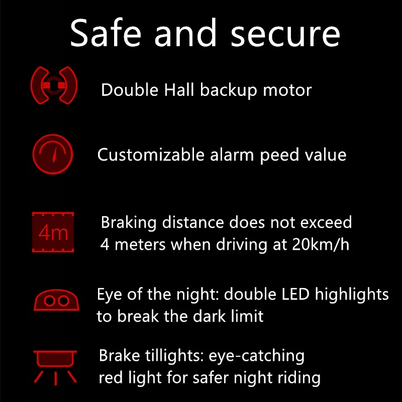 Мощная поддержка для воспламенения скорости и страсти, каждый шаг-мощная. Выходная мощность двигателя до 1800 Вт. Мощность аккумулятора до 995wh. Скорость безопасности составляет 20 км/ч, а дальность полета до 90 км.