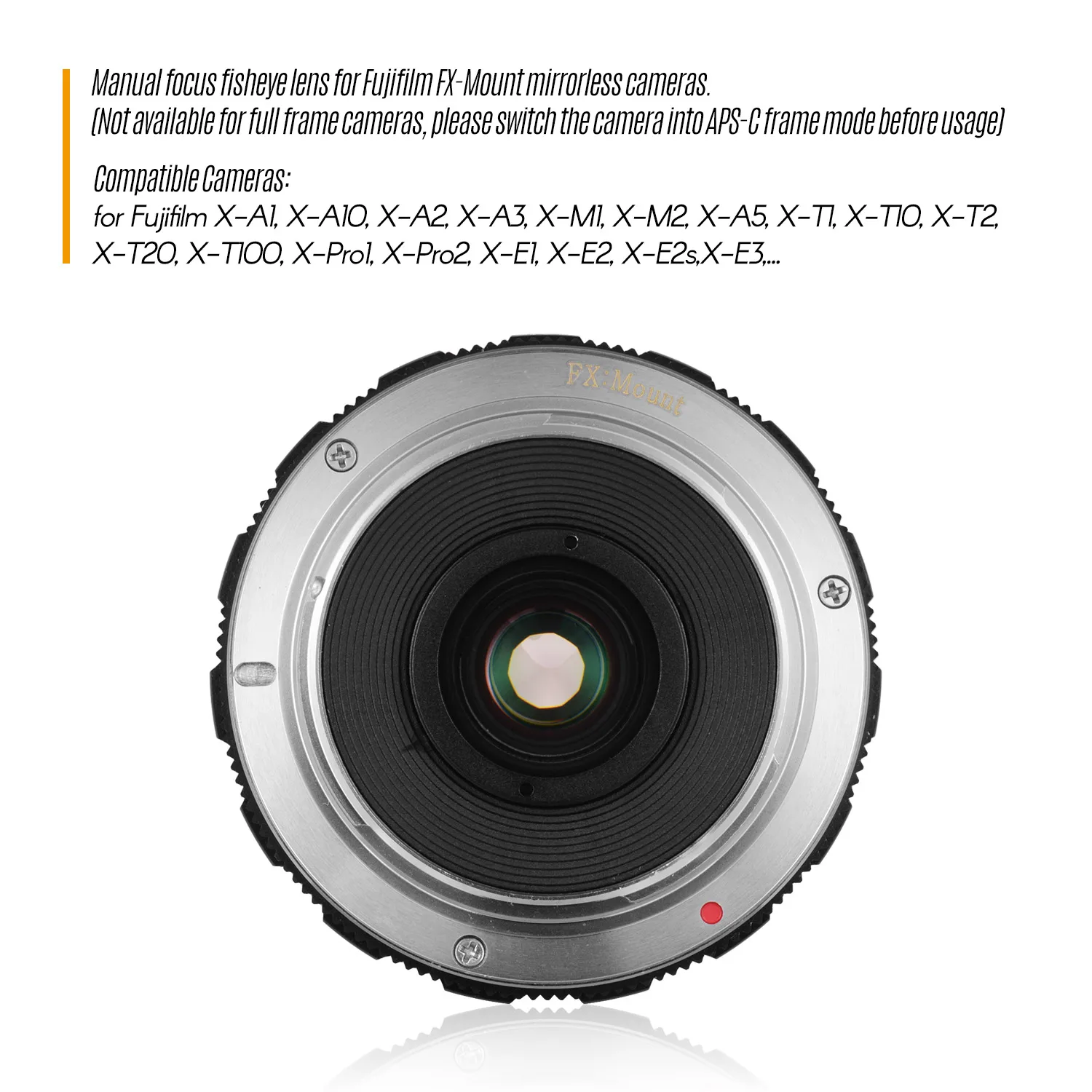 Объектив с ручным фокусом, совместимый с беззеркальными камерами Fujifilm FX. (не доступен для камер с полной рамкой, пожалуйста, включите камеру в режим APS-C кадра перед использованием)