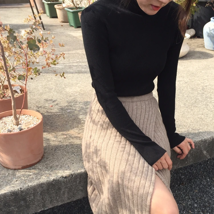 Длинная юбка-карандаш Женская осенне-зимняя трикотажная юбка с высокой эластичной талией Офисная Женская открытая Повседневная винтажная юбка макси V977
