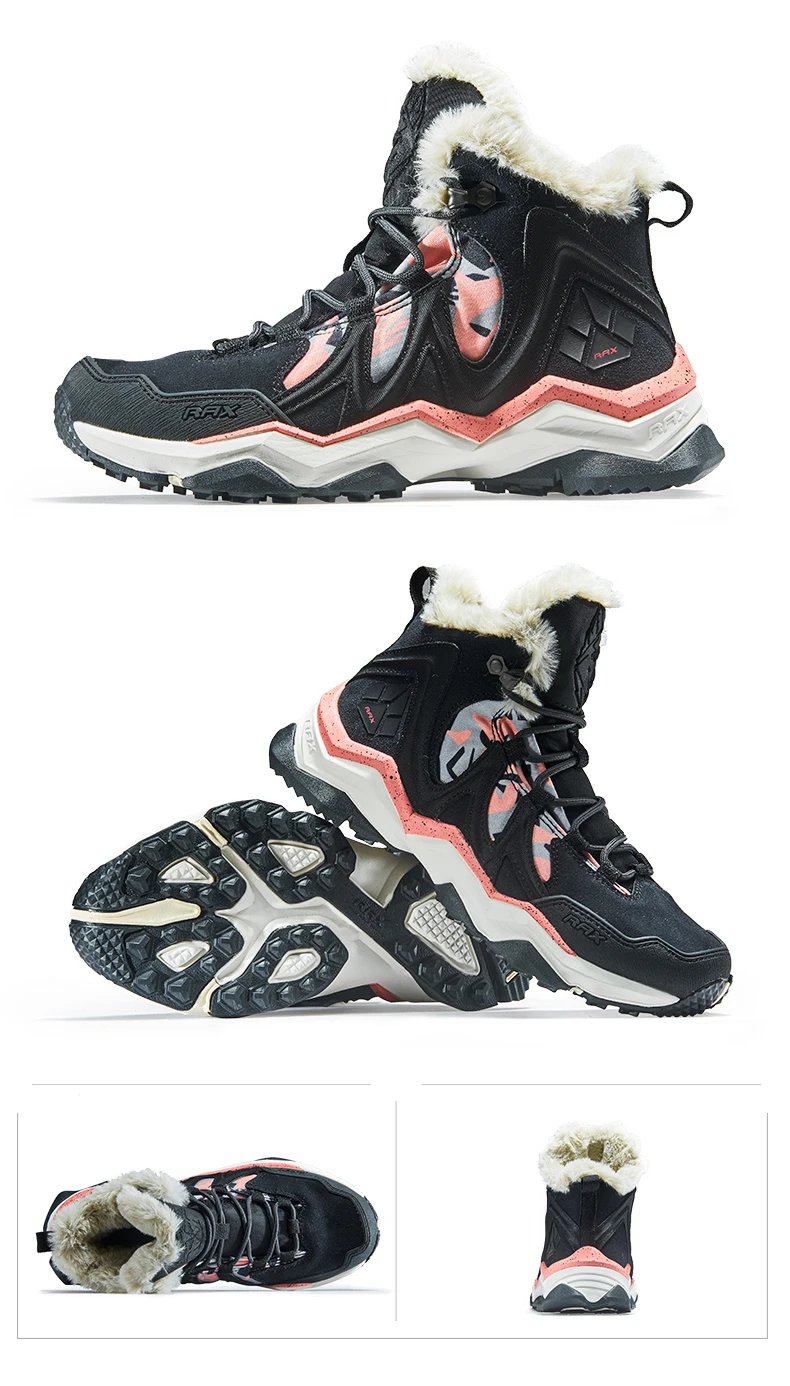 RAX Winter Snow Boots For Men Women Fleece Hiking Shoes Outdoor Sports Sneakers Mens Mountain Shoes Trekking Walking Boots