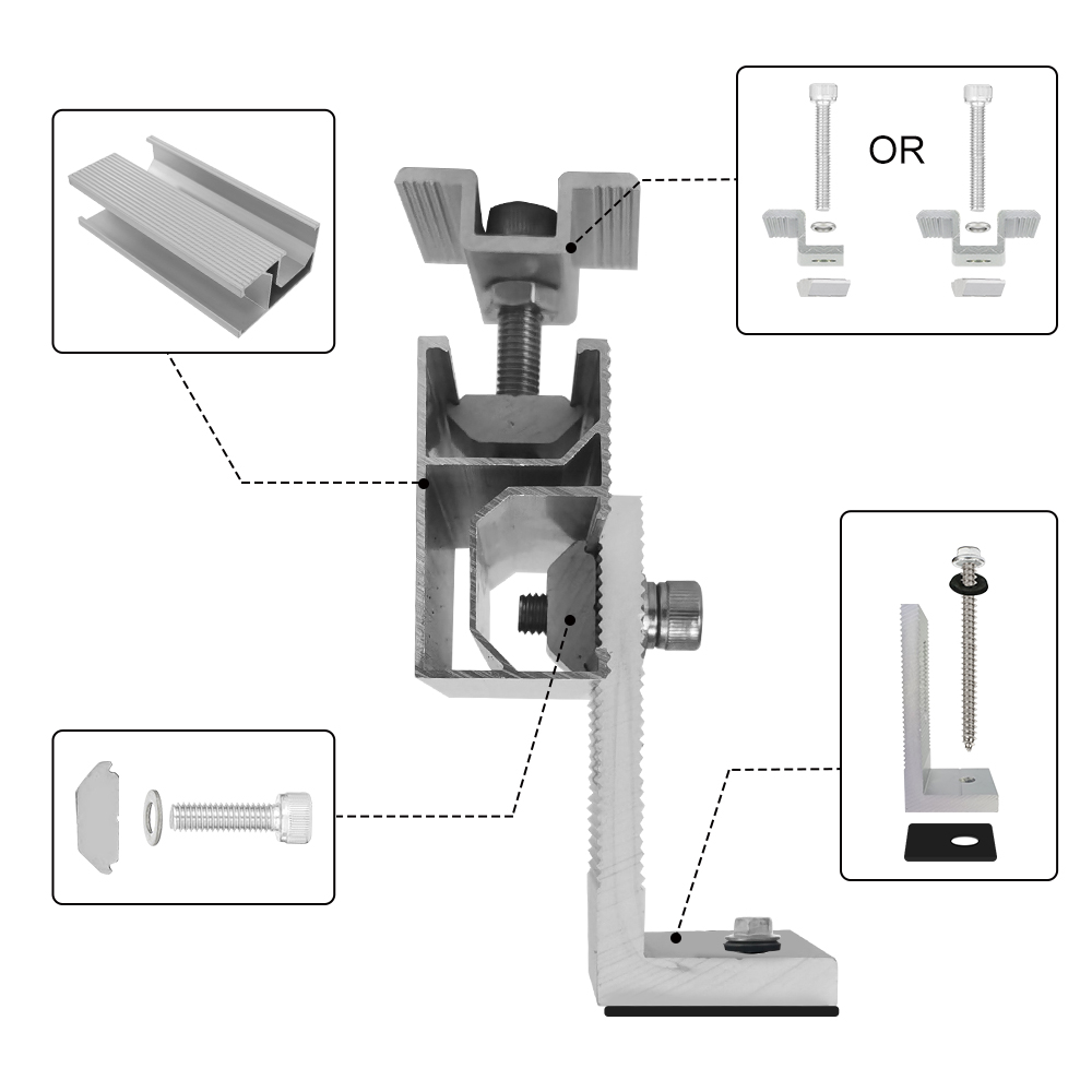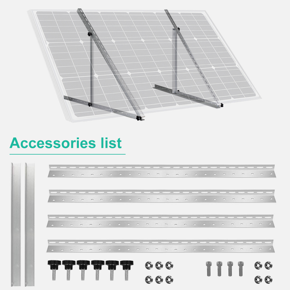 Многопанельное крепление Совместимо с монокристаллическими панелями ECO-WORTHY мощностью 100 Вт и монокристаллическими панелями мощностью 120 Вт и солнечными панелями мощностью 195 Вт.