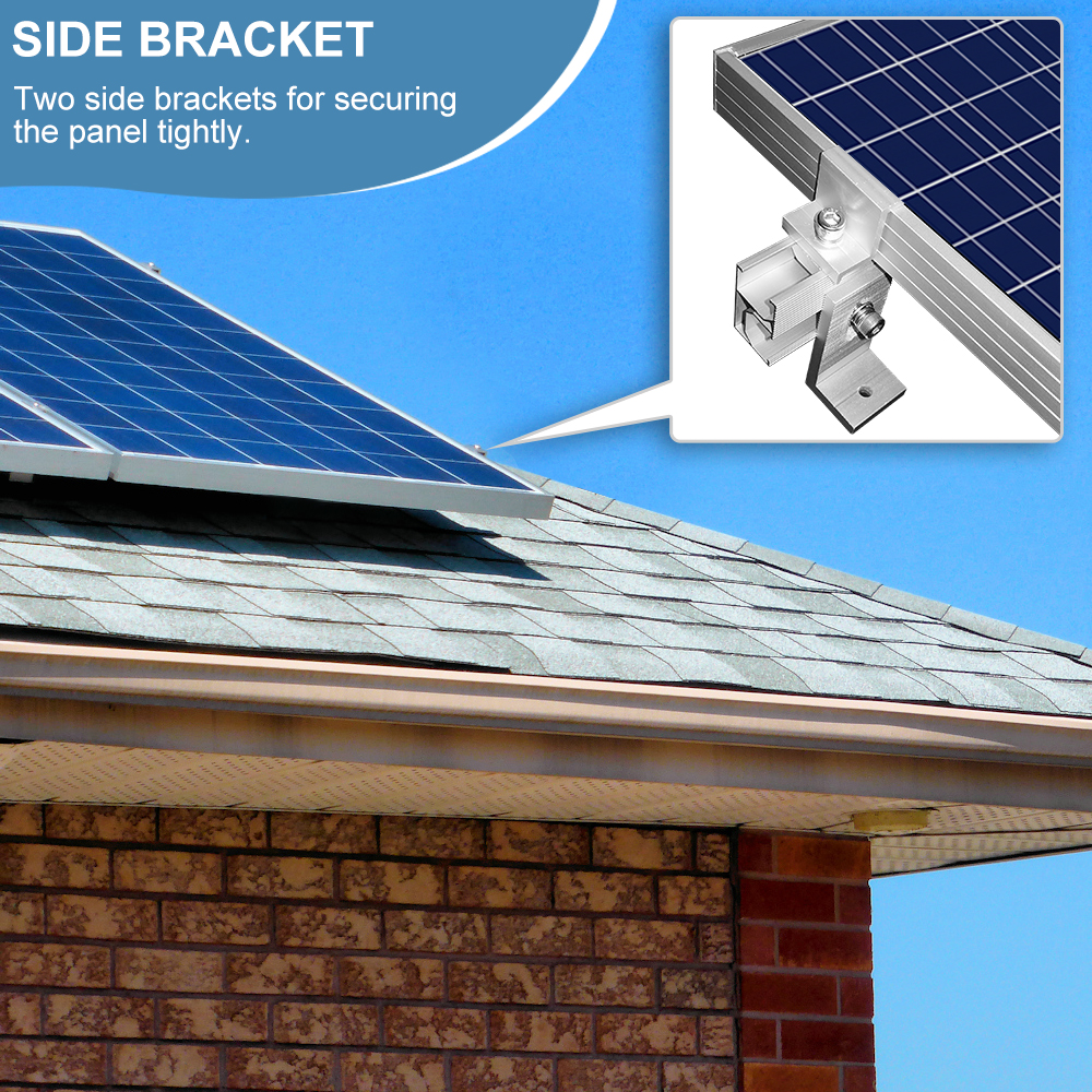Идеально подходит для большинства солнечных панелей в рамке, эти кронштейны могут быть прикреплены к задней части большинства солнечных панелей в рамке, что позволяет солнечной панели быть легко прикреплены к плоской поверхности. Идеально подходит для жилых домов, кемперванов, домов на колесах, лодок... и т. Д.