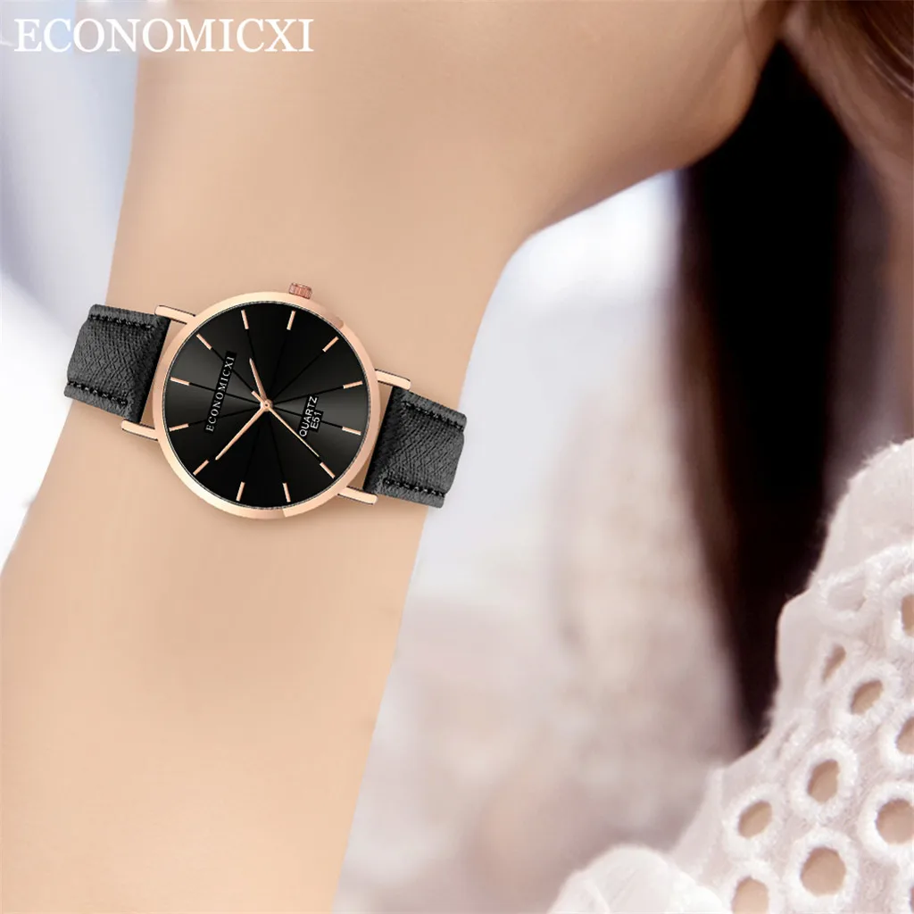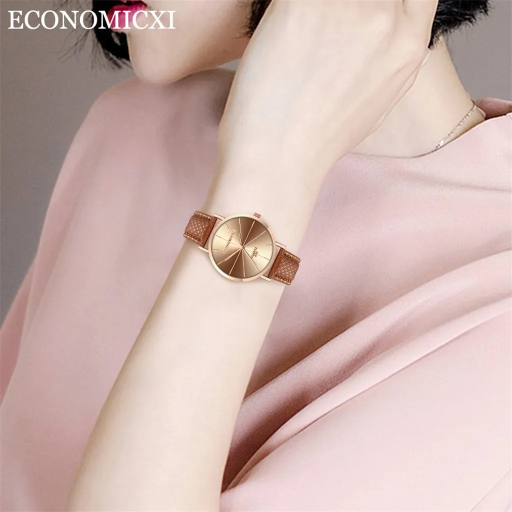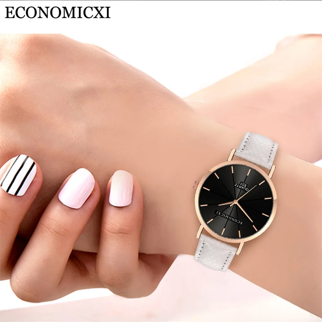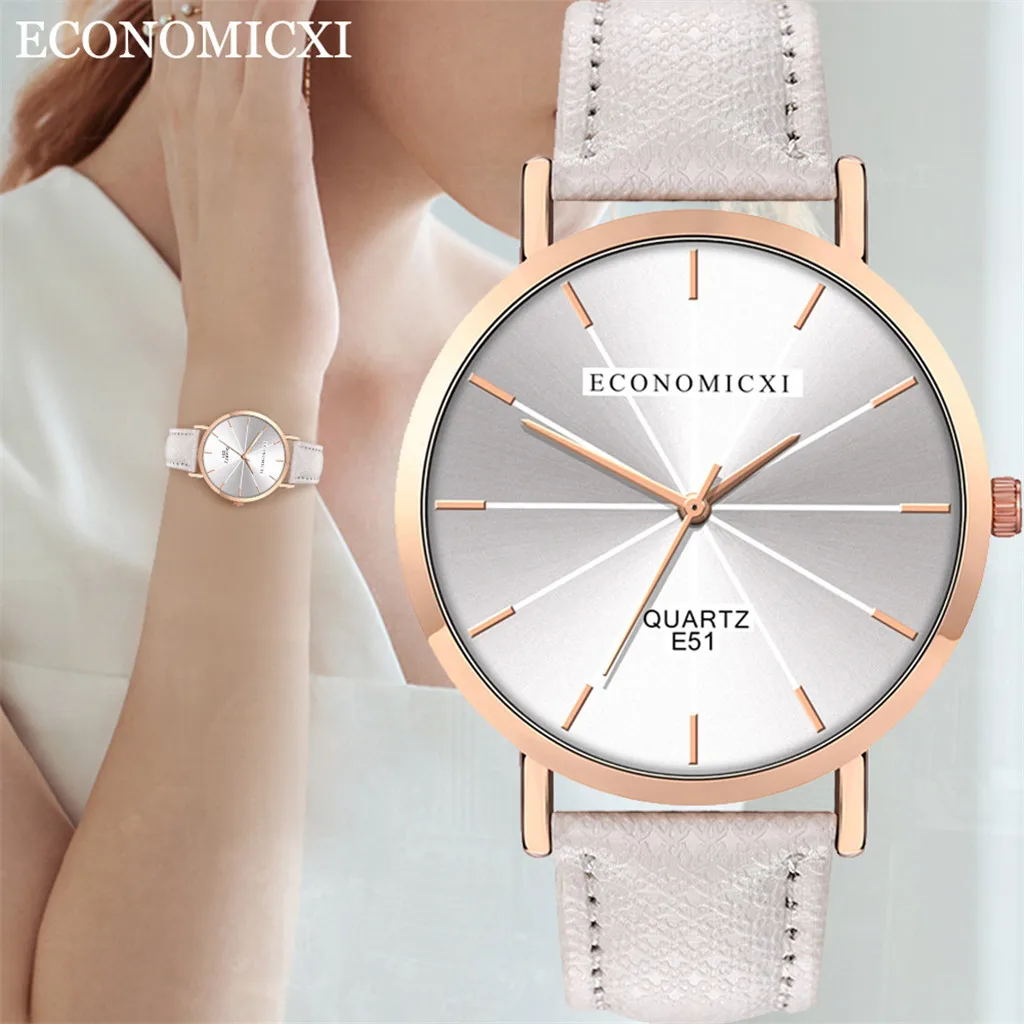 Модные женские часы для бизнеса с кожаным ремешком, кварцевые аналоговые круглые наручные часы, женские часы женски 2019