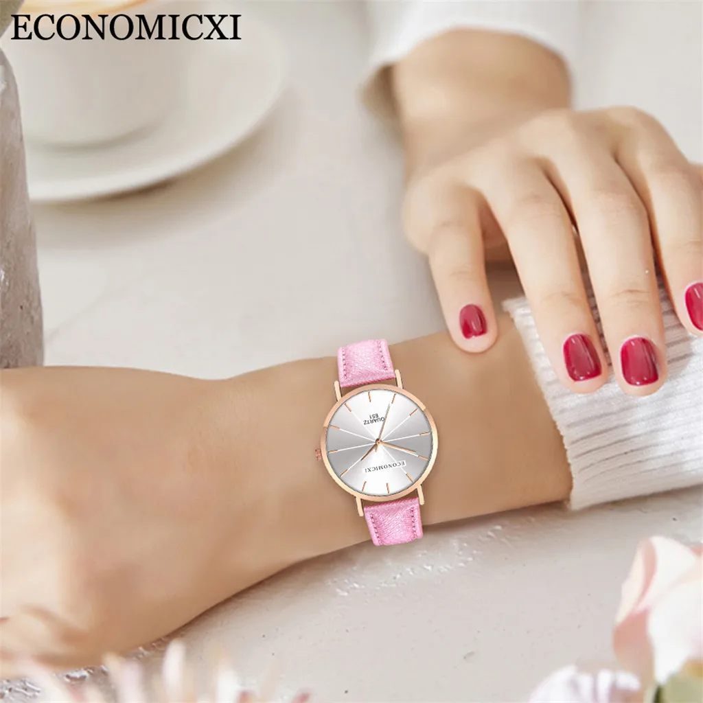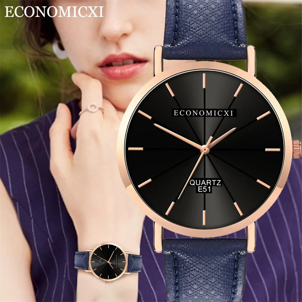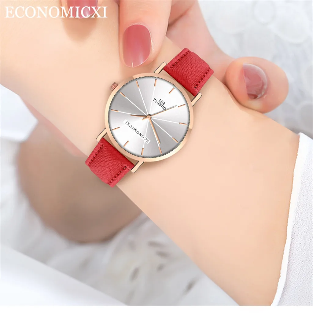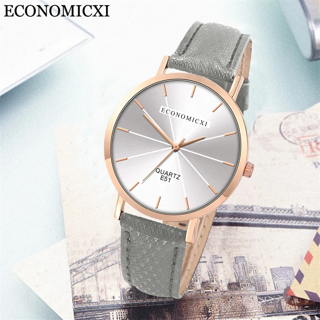 Модные женские часы для бизнеса с кожаным ремешком, кварцевые аналоговые круглые наручные часы, женские часы женски 2019