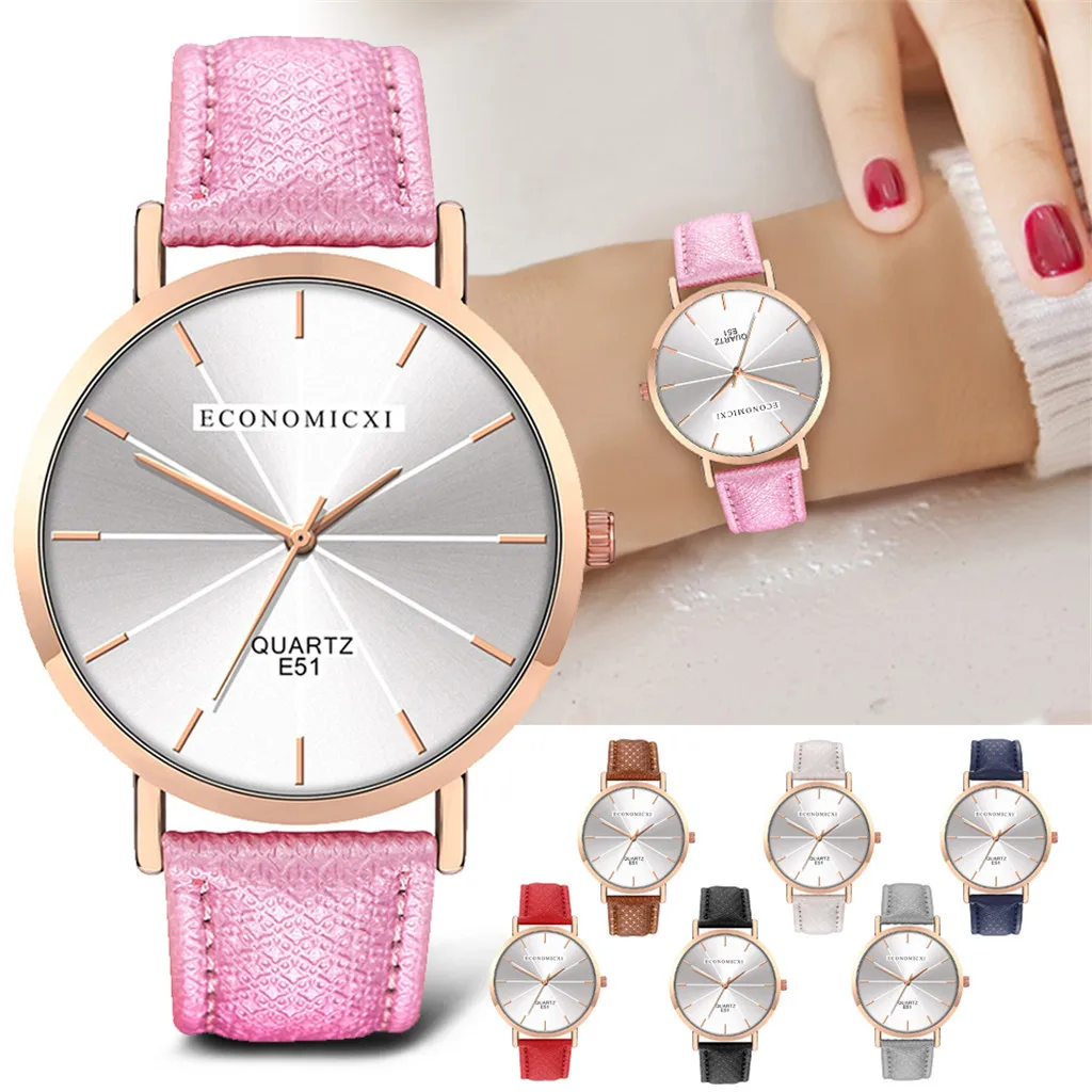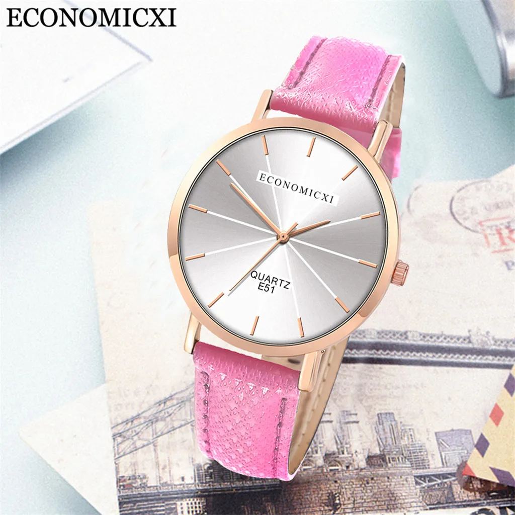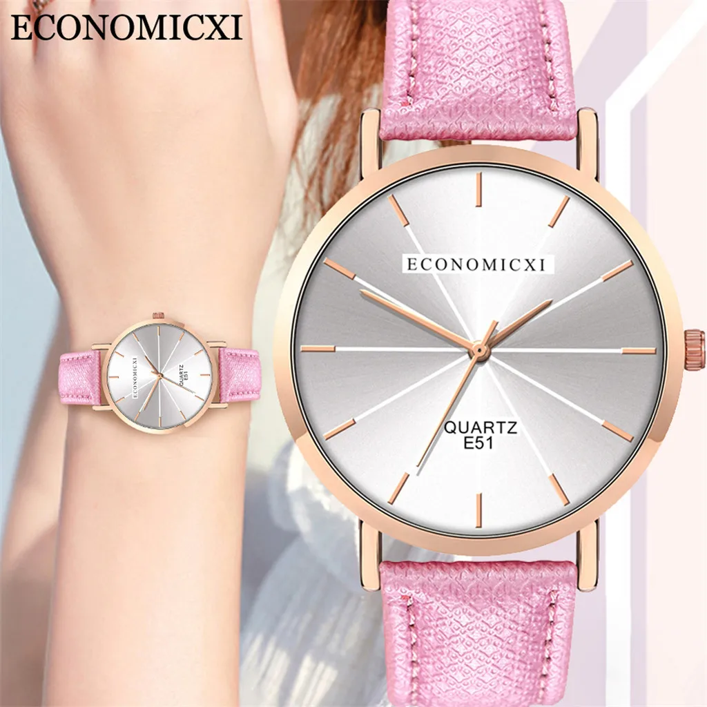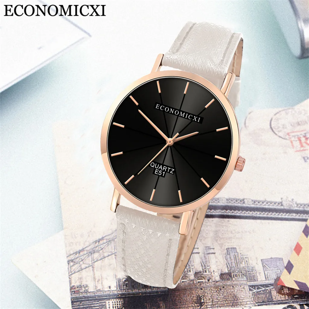 Модные женские часы для бизнеса с кожаным ремешком, кварцевые аналоговые круглые наручные часы, женские часы женски 2019