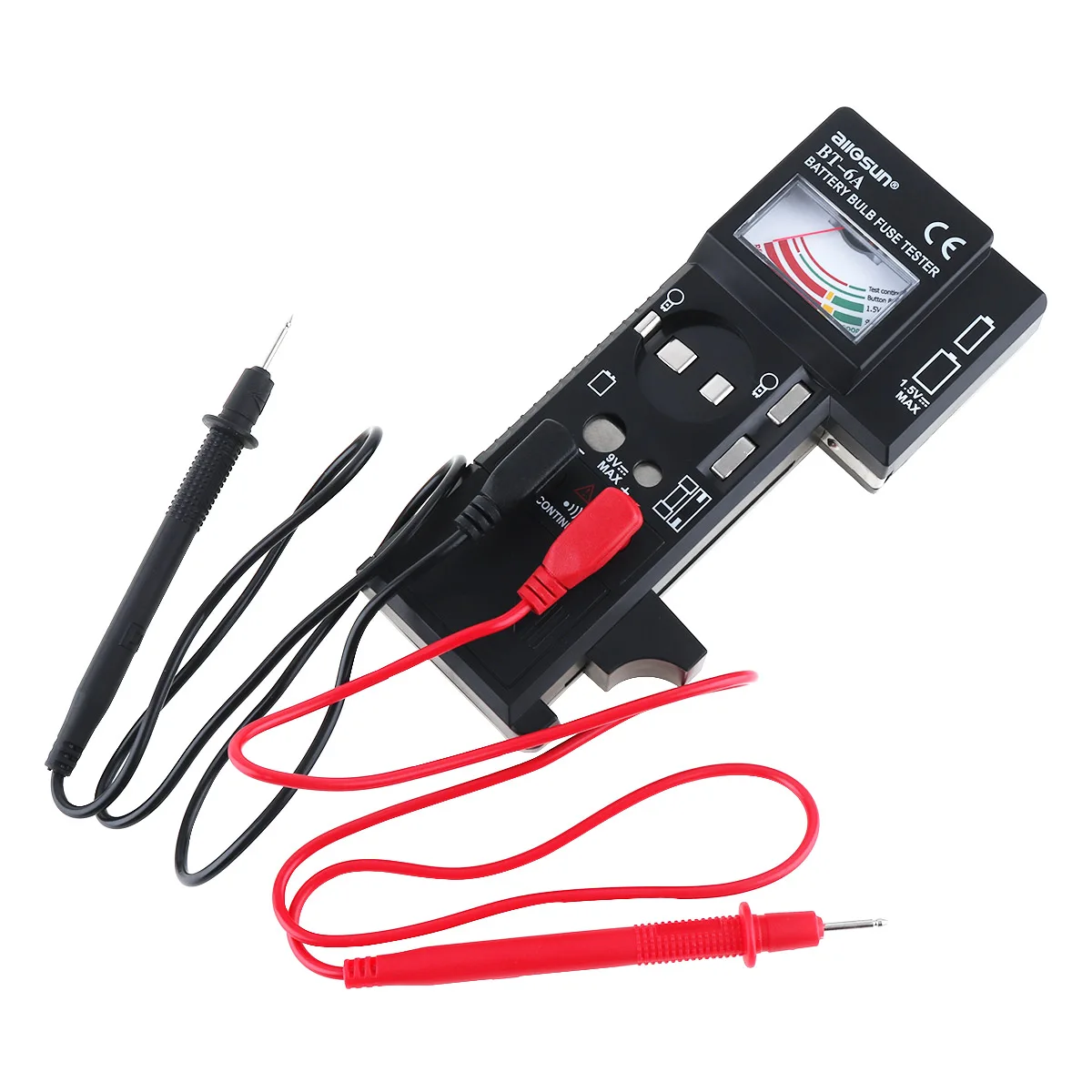 -Прибор имеет множество применений, измеряемая батарея 1,5 В (AAA, AA, C, D и т. Д.), Батарея 9 В