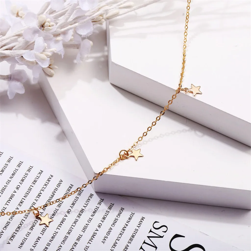 Три звезды кулон ожерелье Ретро Простой ключицы цепь сплав ожерелье
