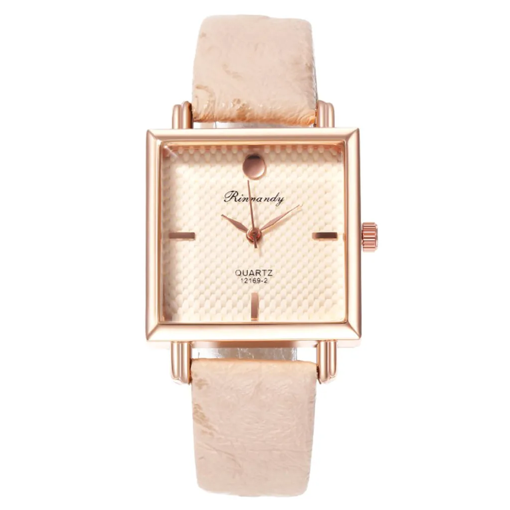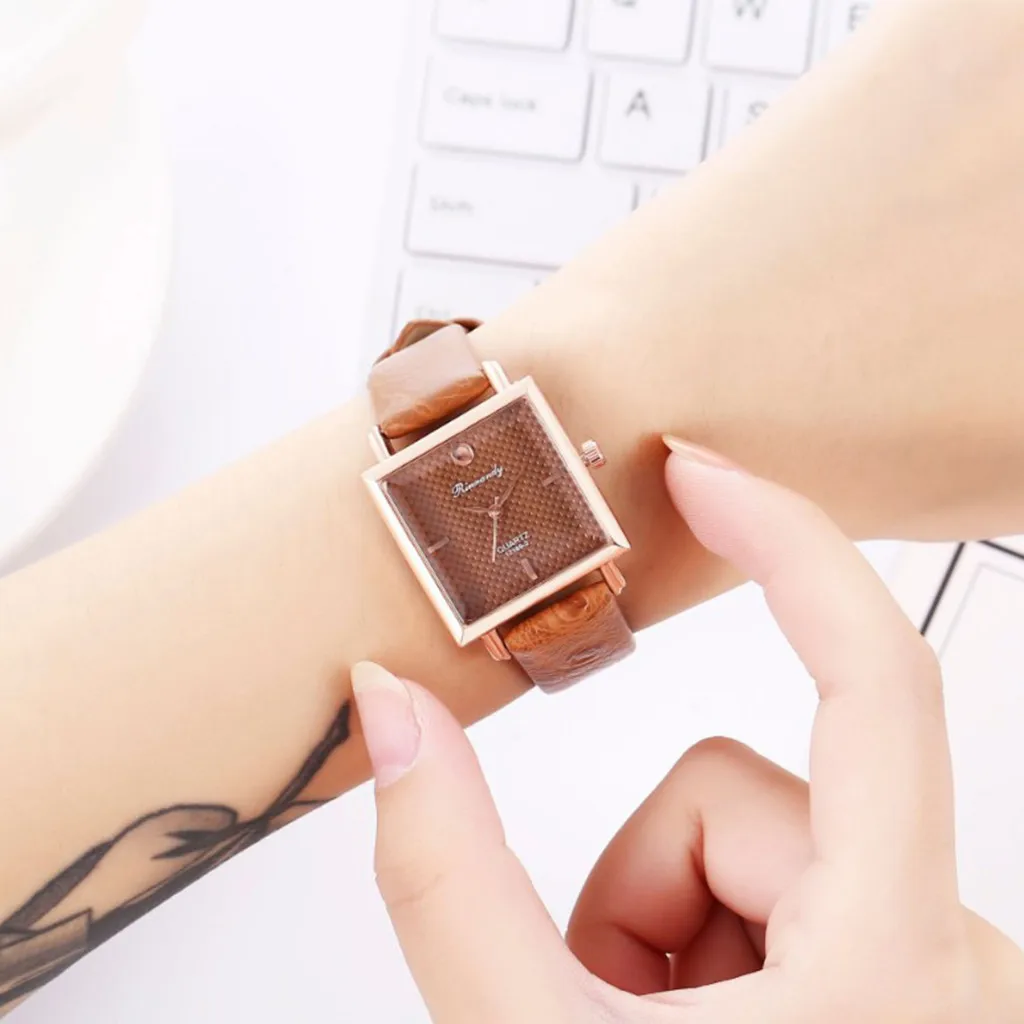Fashion Casual Women Watch Square Head Leather Belt Buckle Alloy Ladies Clock Simple Round Quartz Wrist Watches relogio feminino