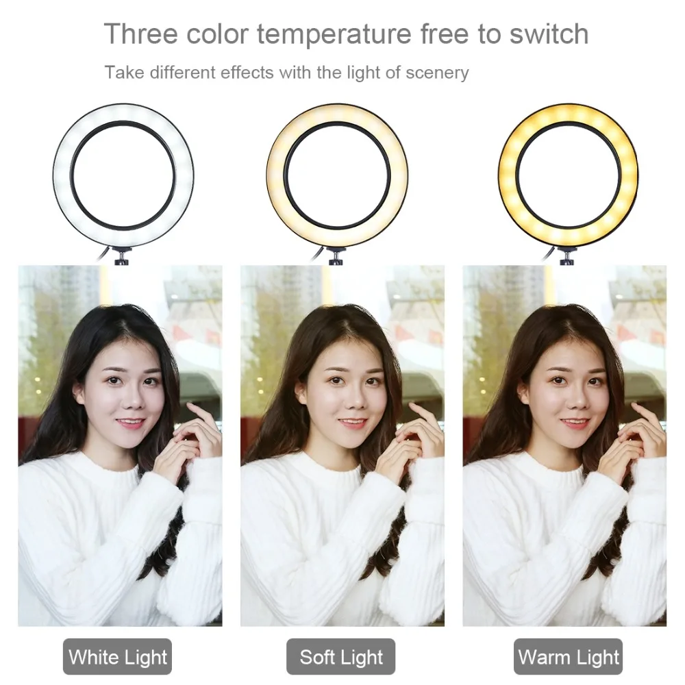 The ring light is made of 20pcs energy-saving LED beads, it heat dissipation is excellent, constant current drive and high color rendering, soften the light source and enhance skin tone in portraits photography.