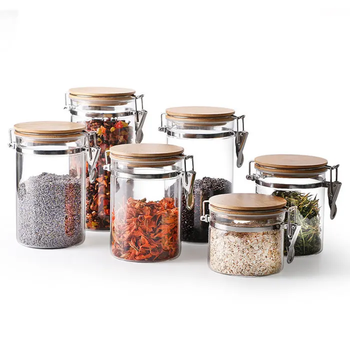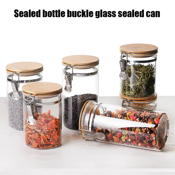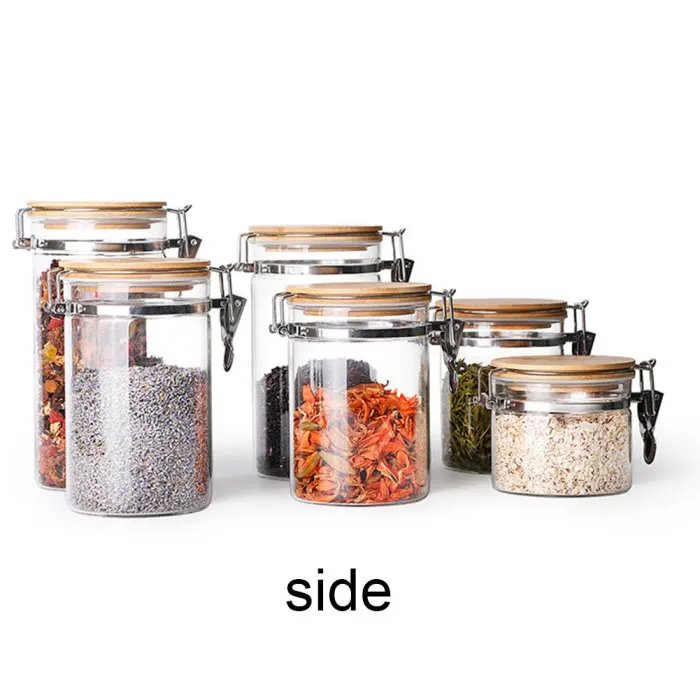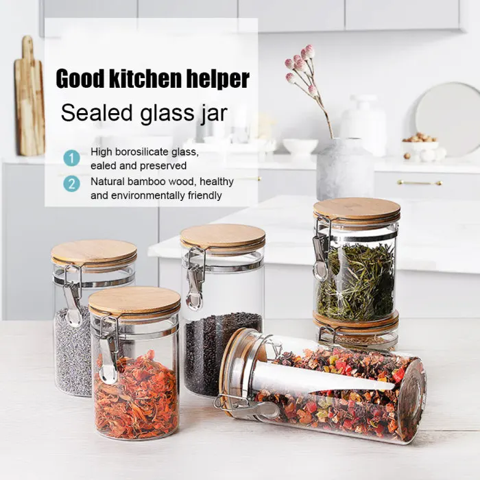 1 шт. маленькие стеклянные бутылки стеклянная банка чай кофе в зернах сахар соль контейнер для хранения продуктов с бамбуковой крышкой герметичные кухонные аксессуары