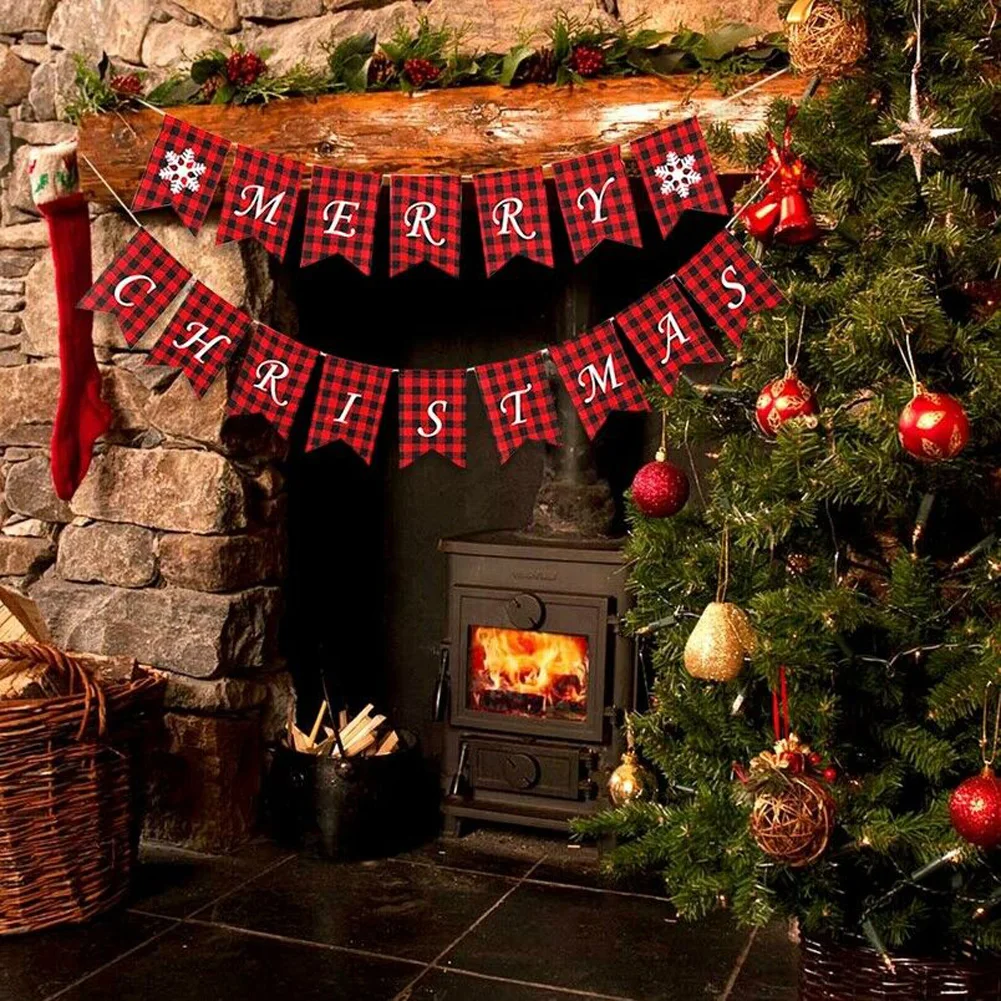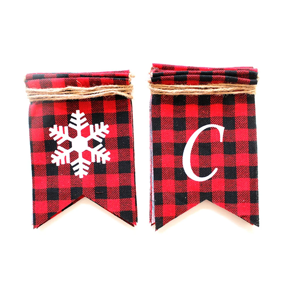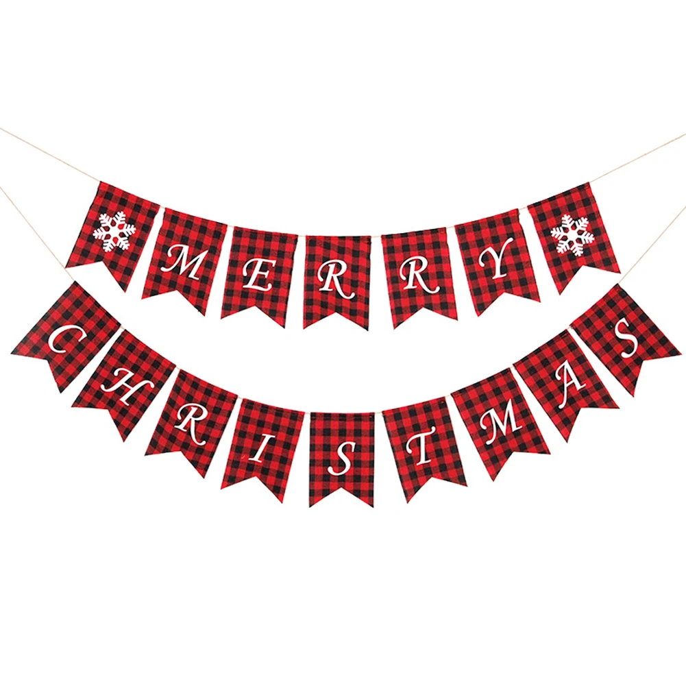 2: Счастливого Рождества баннер с двумя флагами снежинки-Буффало плед баннер украшение для камина стены дерево Рождественское украшение