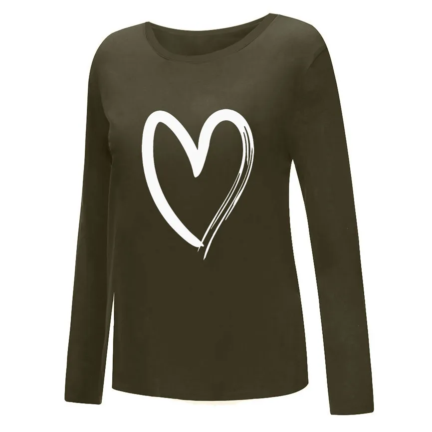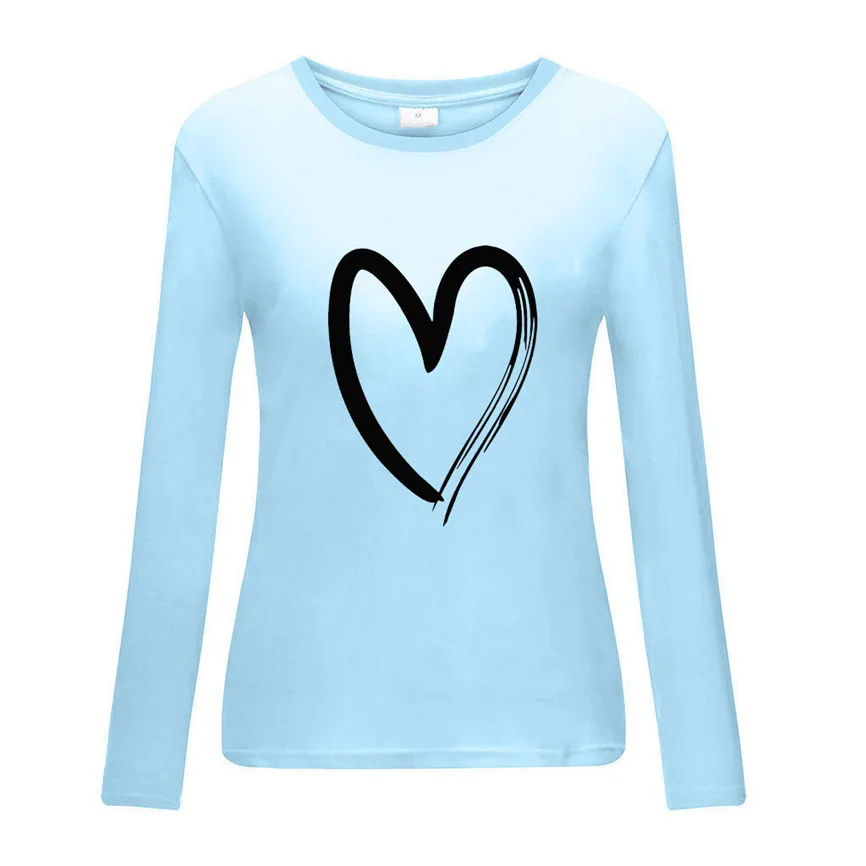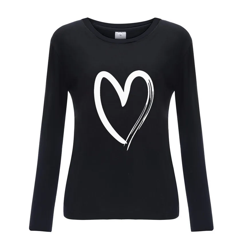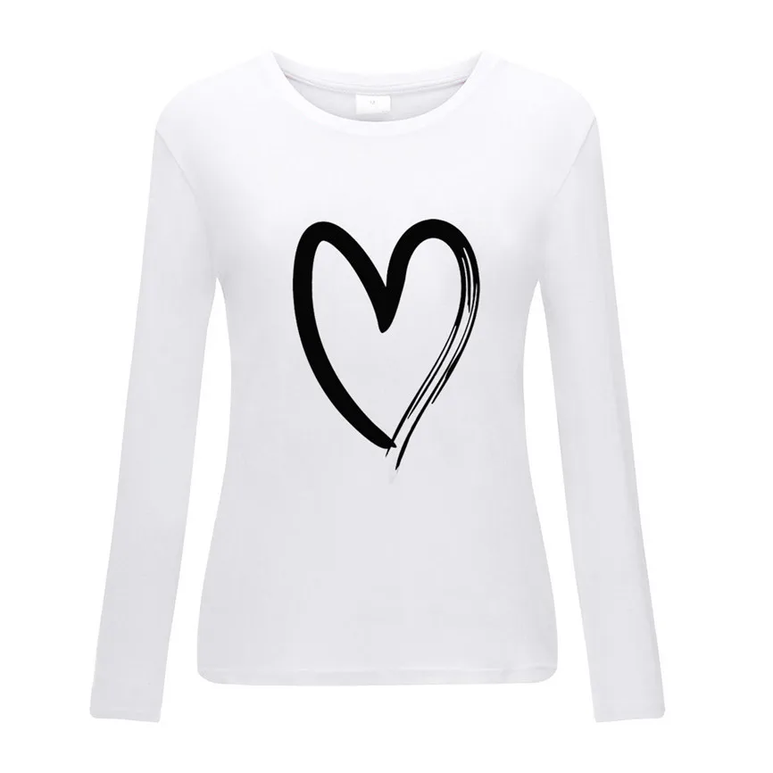 Женские ПовседневноеРубашки с принтом, с круглым вырезом, с длинным рукавом, топ, свободная футболка, блузка