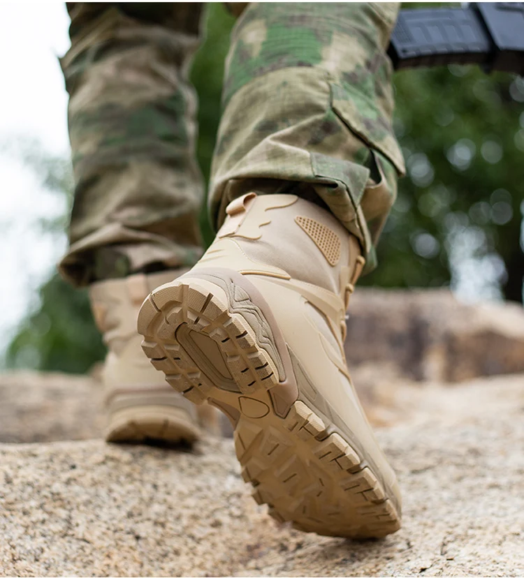New Men Tactical Military Boots Special Desert Combat Ankle botasTacticas Hombre Army Work Waterproof Hiking Shoes Snow Boots 45 Upper: leather Outsole:Rubber Size:40-45