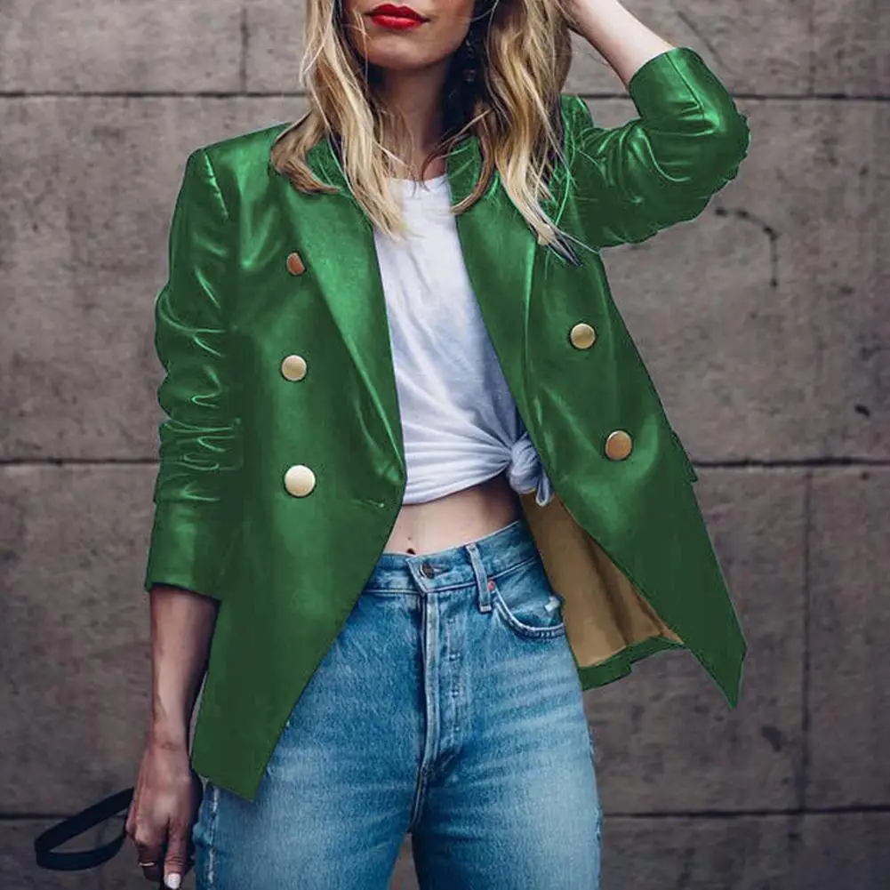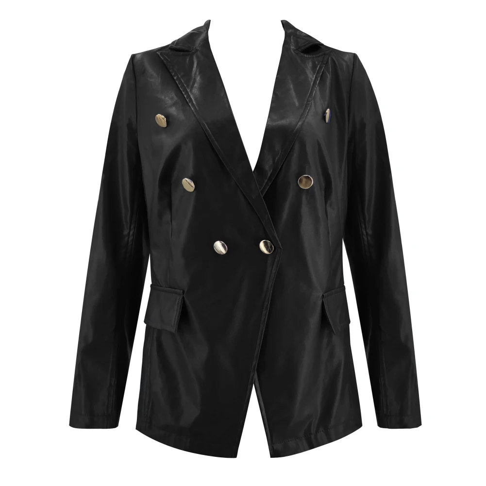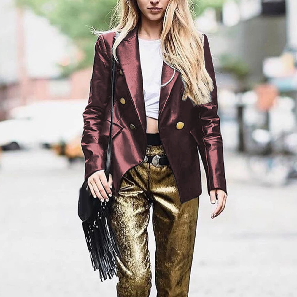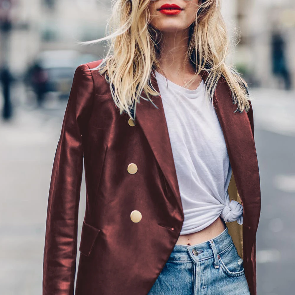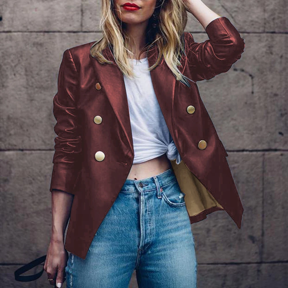 Женский Осенний сплошной цвет искусственная кожа двубортный лацкан Блейзер пиджак костюм