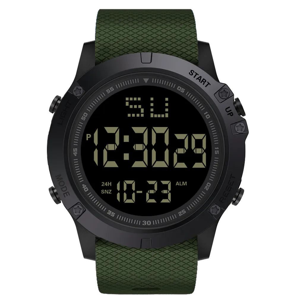 Модные мужские светодиодные цифровые военные спортивные резиновые кварцевые часы с будильником водонепроницаемые