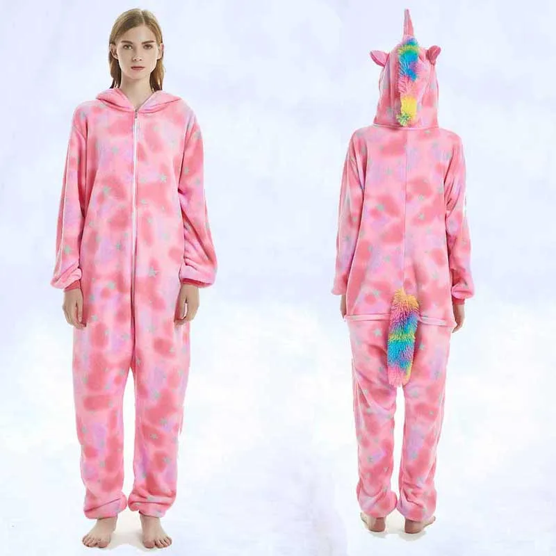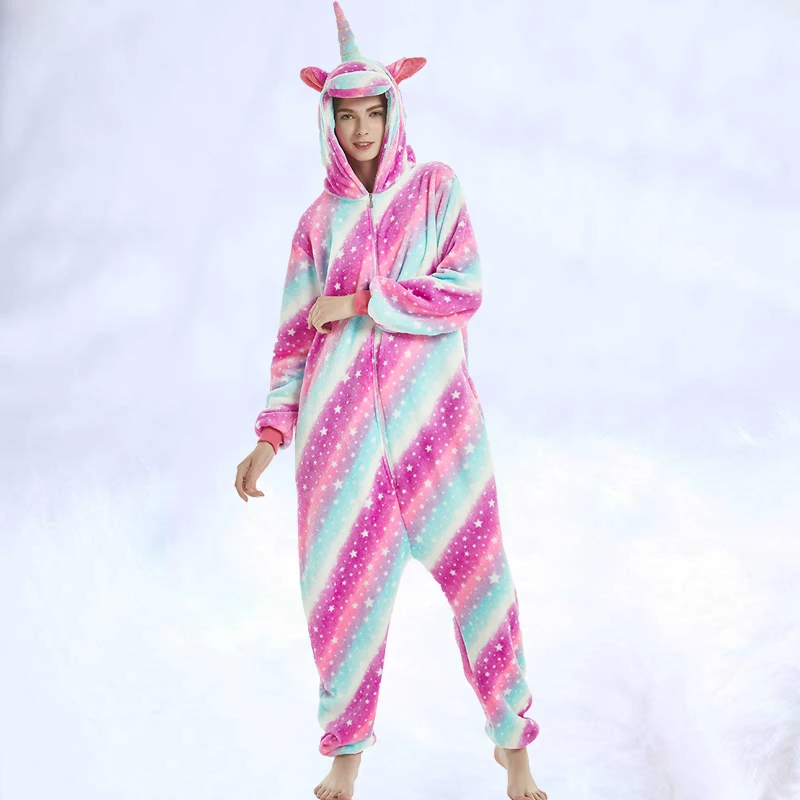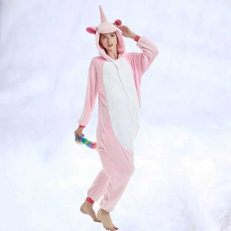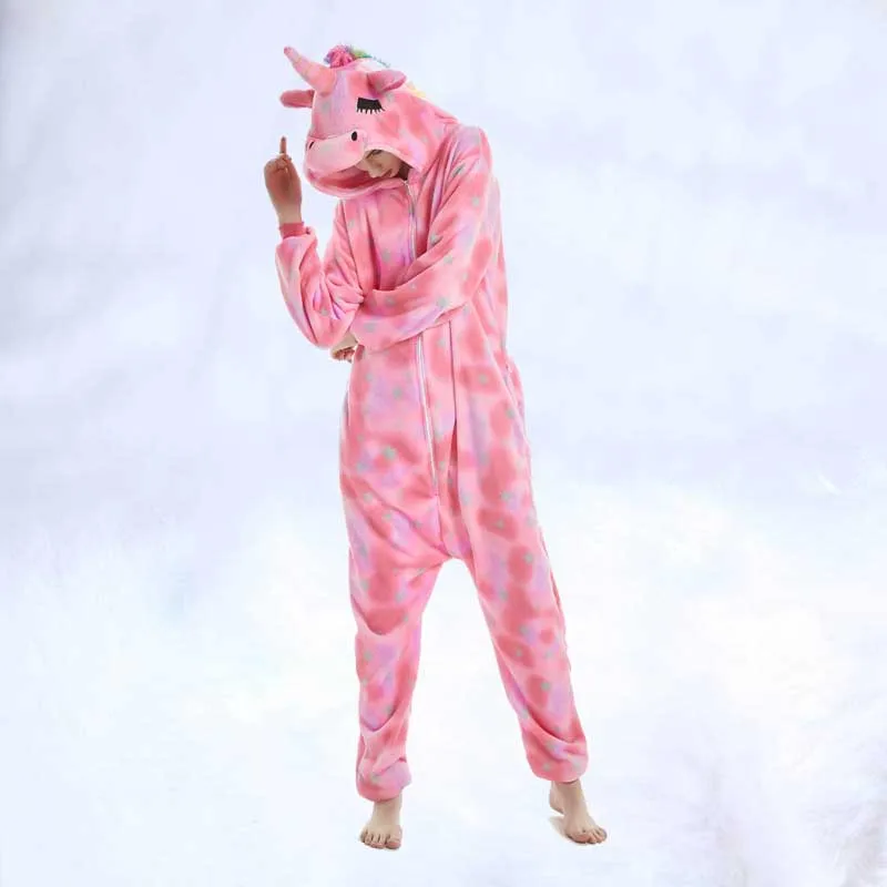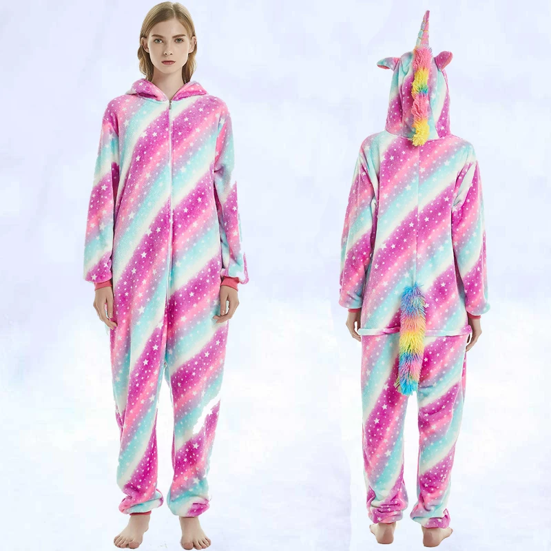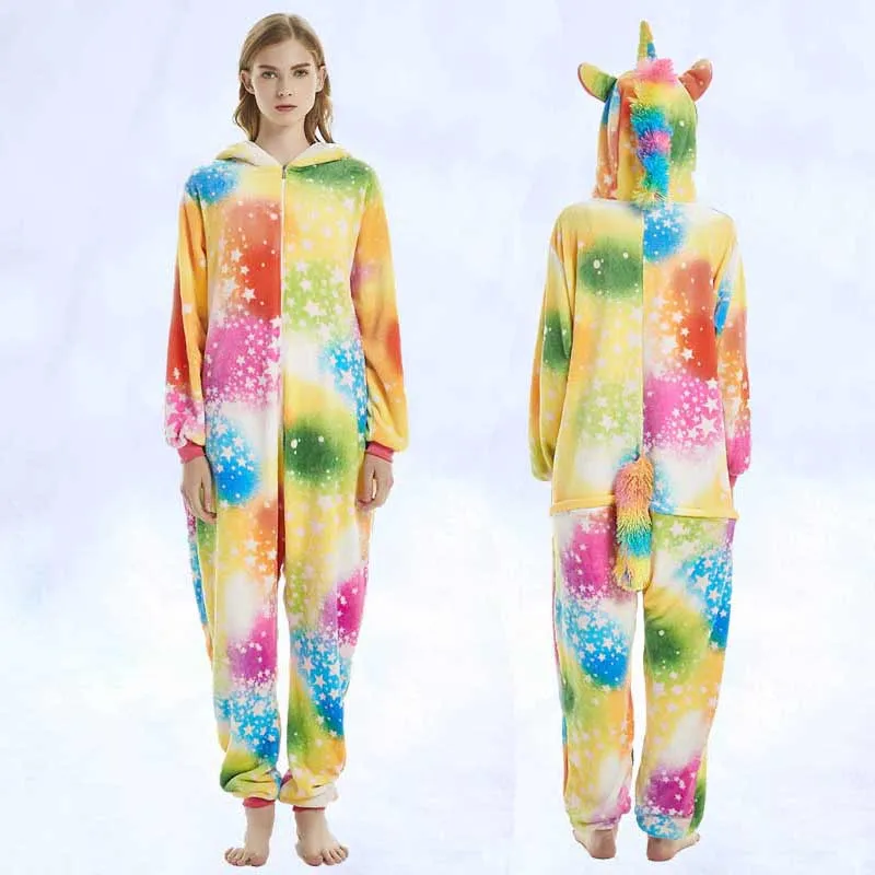Пижамы для мужчин и женщин, фланелевые милые пижамы с рисунками животных, новинка 2019, единорог, радуга, звезда, Тянь, мА, тигр, Лев, лиса, комбинезоны, пижамы