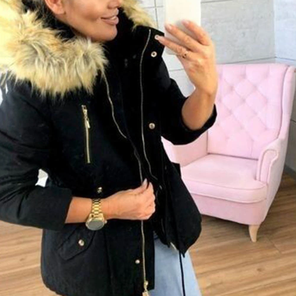 Воротник из искусственного меха и дизайн с капюшоном, лучше сохраняет тепло.