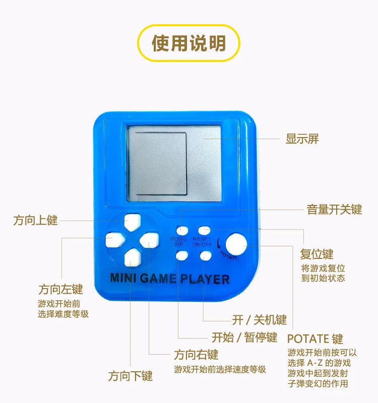[Название продукта]: Мини Портативная игровая машина [Материал изделия]: пластиковый материал и электронные компоненты [Упаковка товара]: в мешках [Размер изделия]: 6*4,5*1,5 см