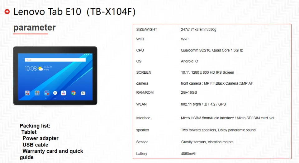 Оригинальный De lenovo E10 tb-x104f планшет является 10,1 дюйма, Wi-Fi, матовый черный Snapdragon четырехъядерный процессор 2G/16G