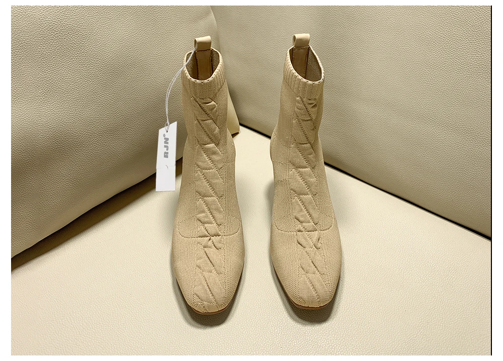 RJN/Элегантные вязаные женские ботильоны удобная обувь на квадратном каблуке без застежки с круглым носком хит продаж; Стильные женские ботинки; RO12