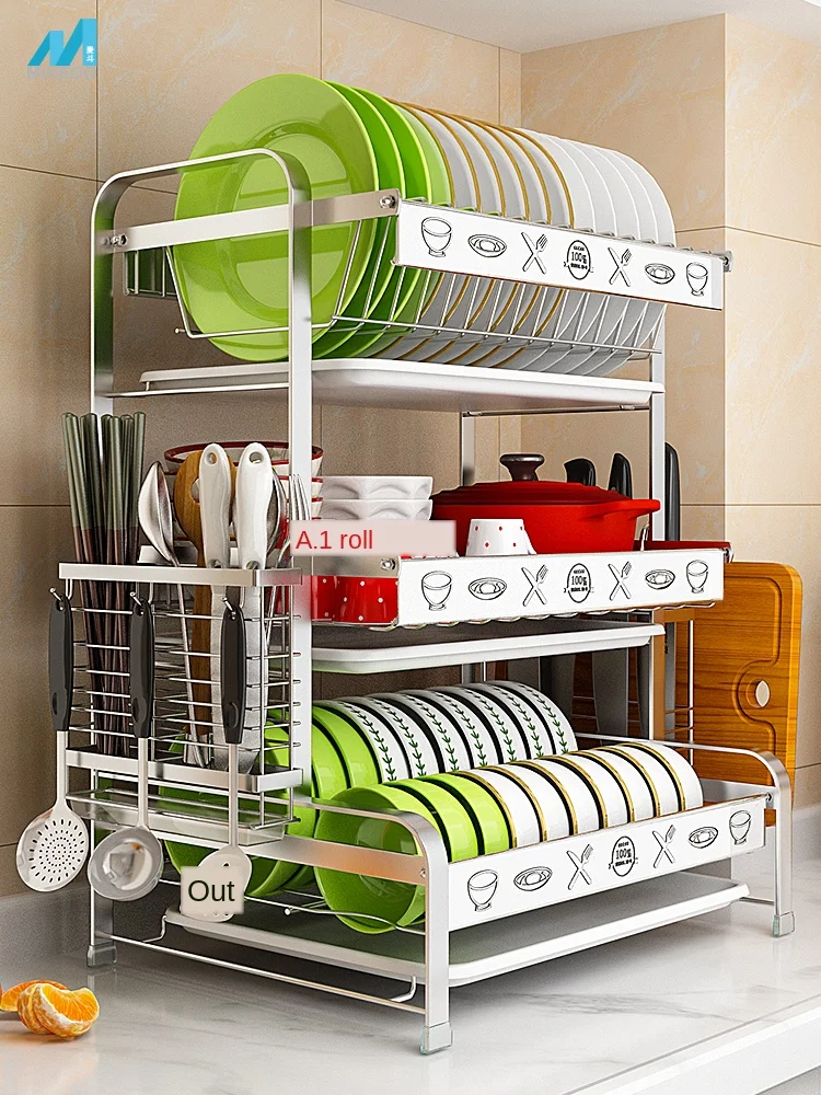 Слив для посуды 304 кухонные стеллажи из нержавеющей стали посуда ящик для хранения посуды шкаф 3 слоя для дома