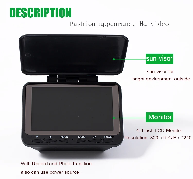 1 、 4,3 дюймов ЖК-дисплей монитора; Разрешение: 320(R.G.B)* 240