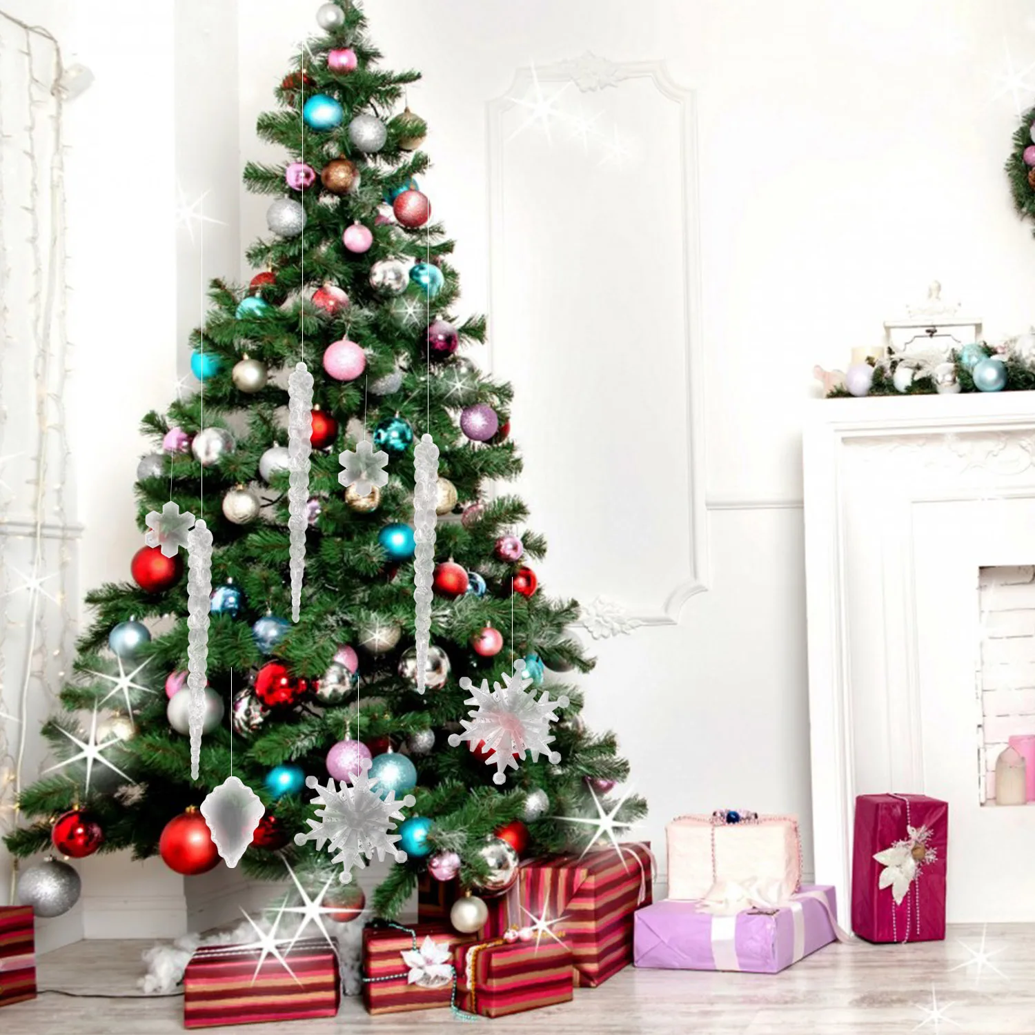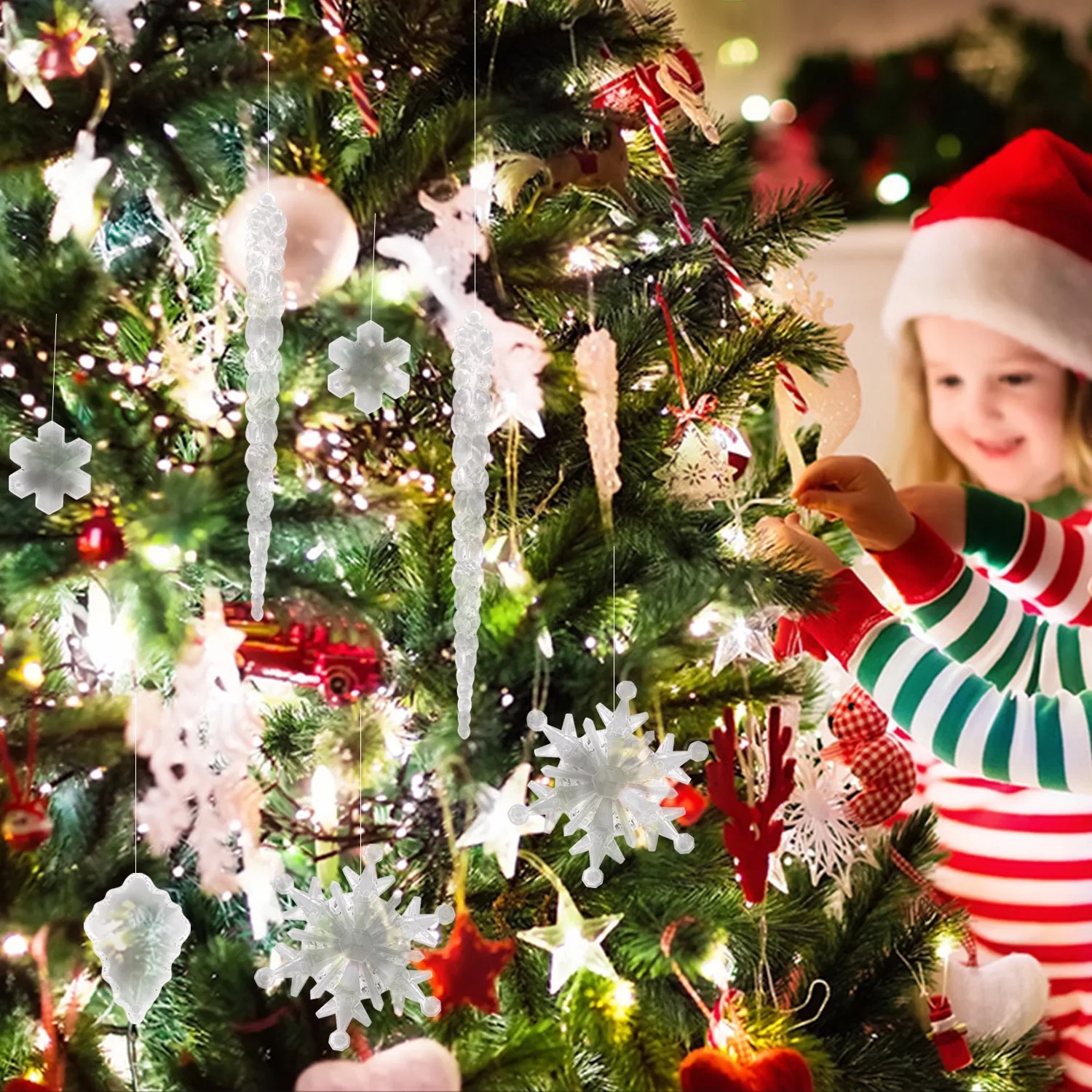 Behogar 45 шт., Набор рождественских украшений, пластиковые хрустальные снежинки, сочки, Рождественская елка, украшения для рождества, новогодние вечерние украшения