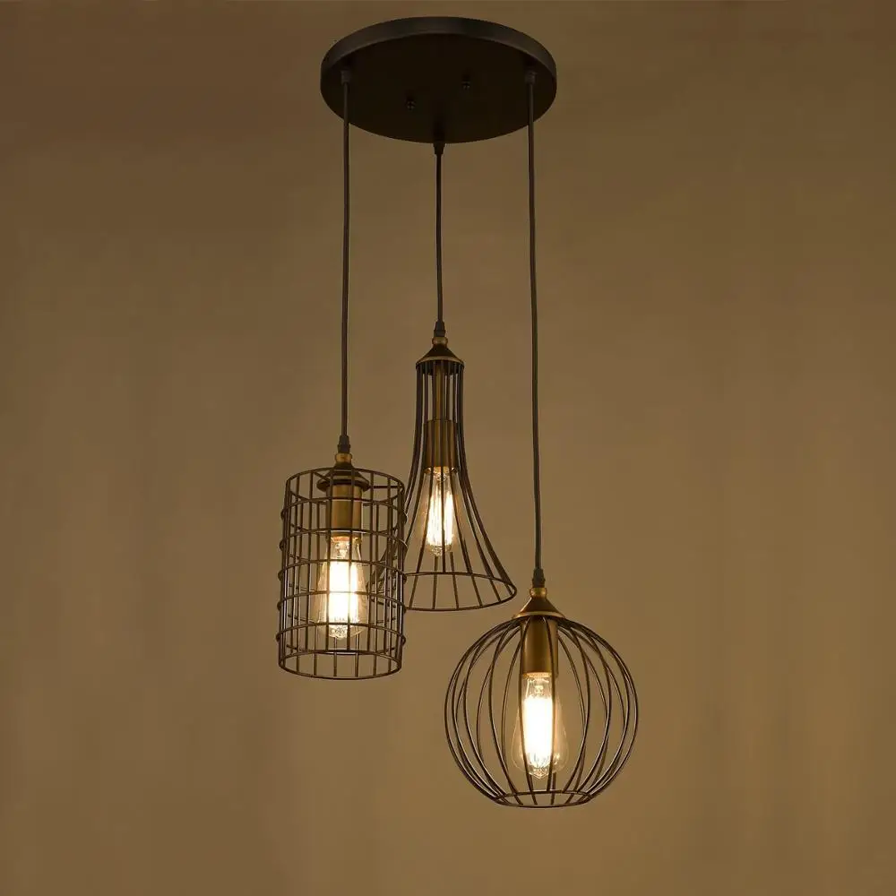 Деревенский светильник, подвесной светильник из железной проволоки, потолочные лампы для дома