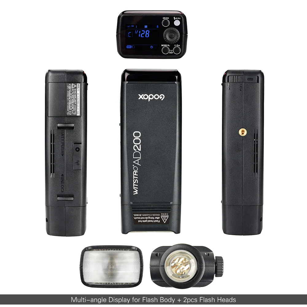 GODOX AD200 TTL 2,4G Вспышка для фотокамер Speedlite HSS 1/8000s эксклюзивная карманная вспышка светильник с двумя головками 200Ws с 2900 мА/ч, литий Батарея стробоскопическая вспышка для цифровой зеркальной камеры Canon Nikon