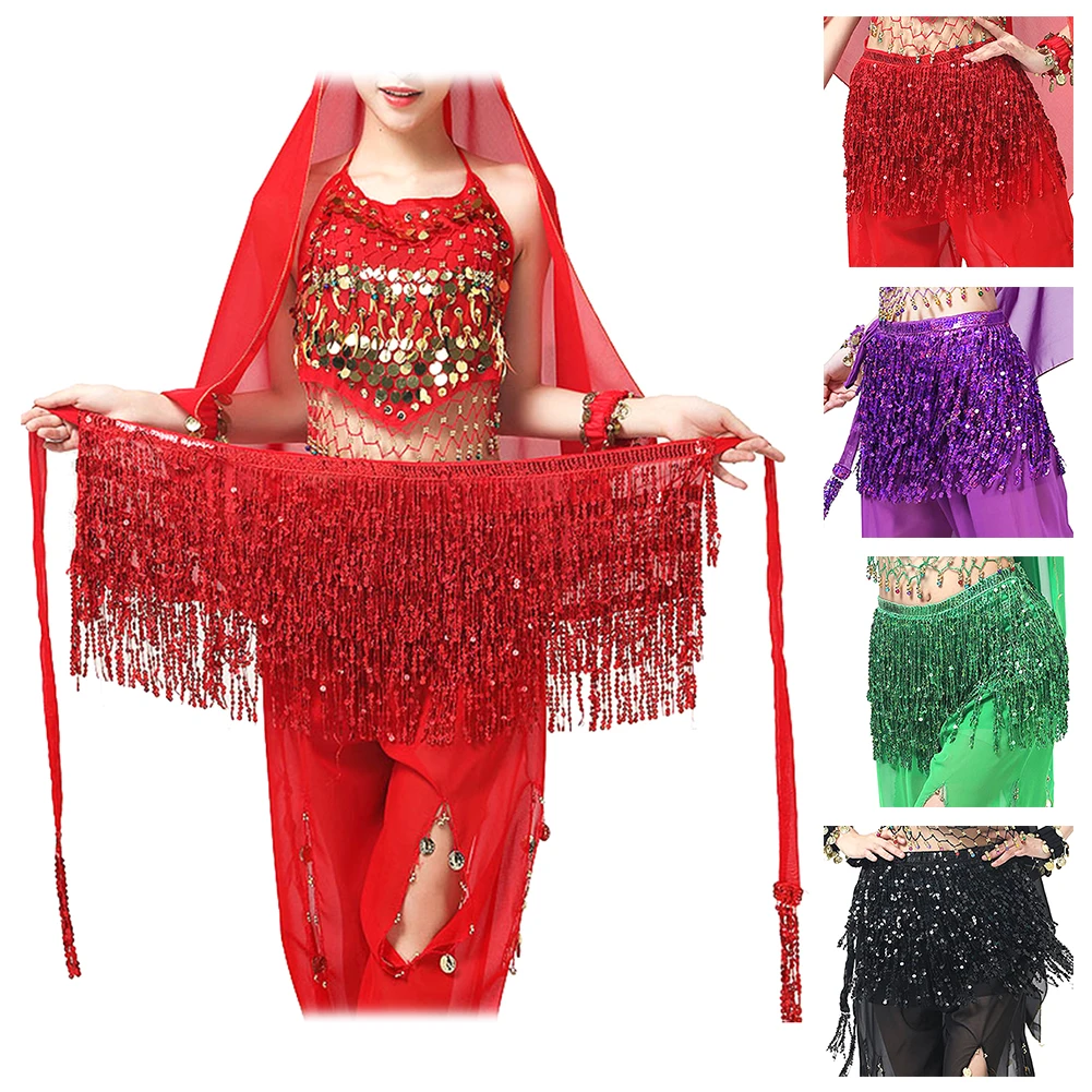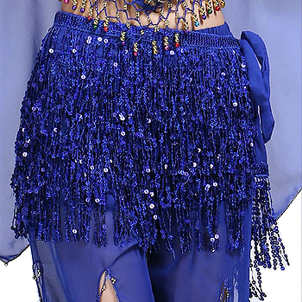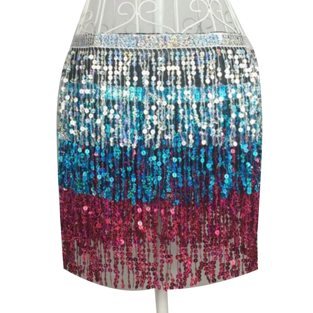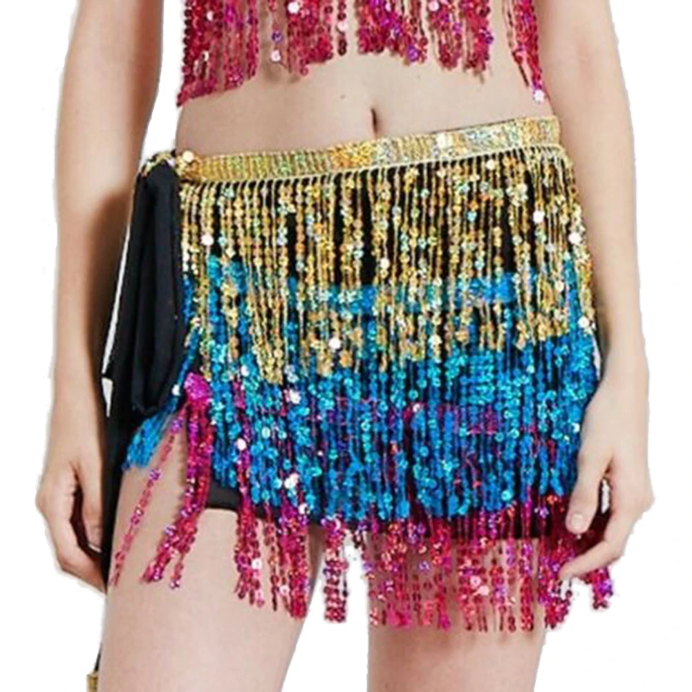 Женщины Танец живота блесток кисточкой бахрома хип шарф Пояс Обертывания юбка танцор костюм