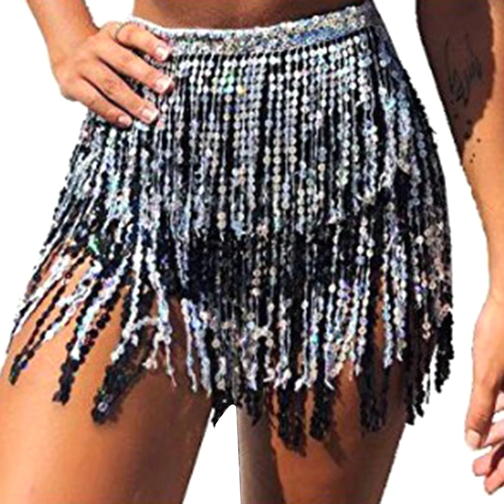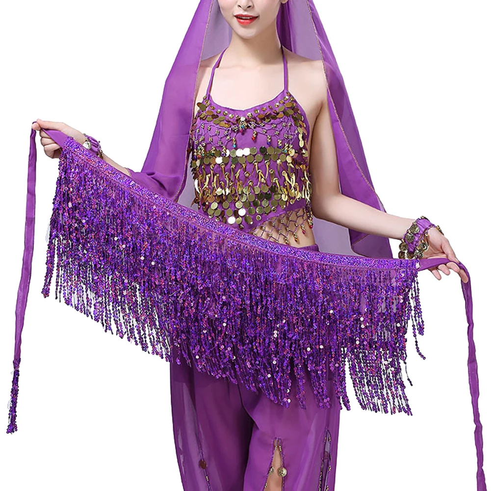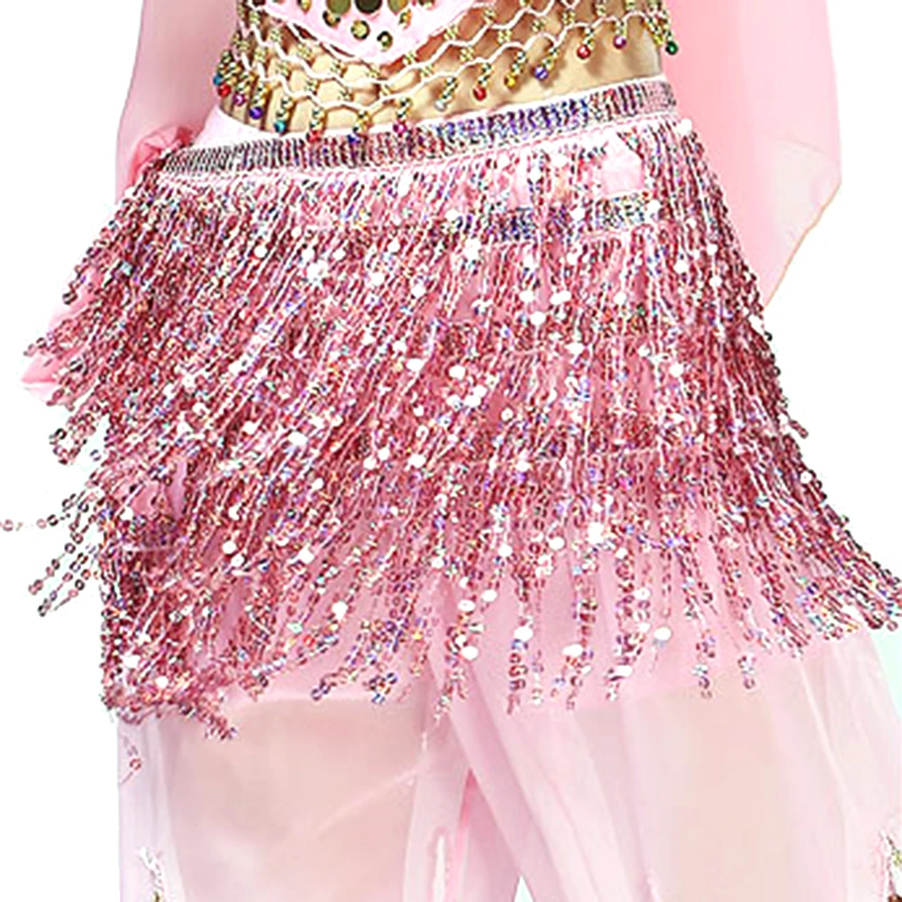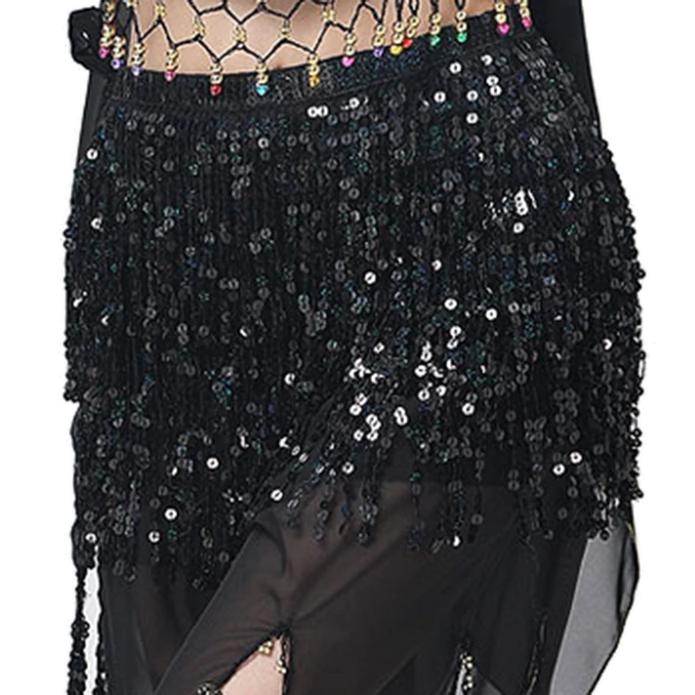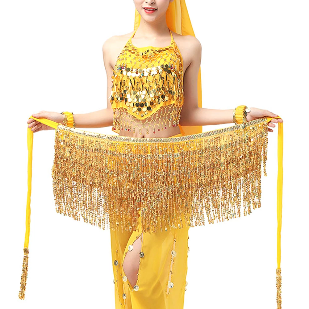Женщины Танец живота блесток кисточкой бахрома хип шарф Пояс Обертывания юбка танцор костюм