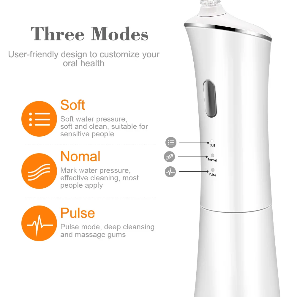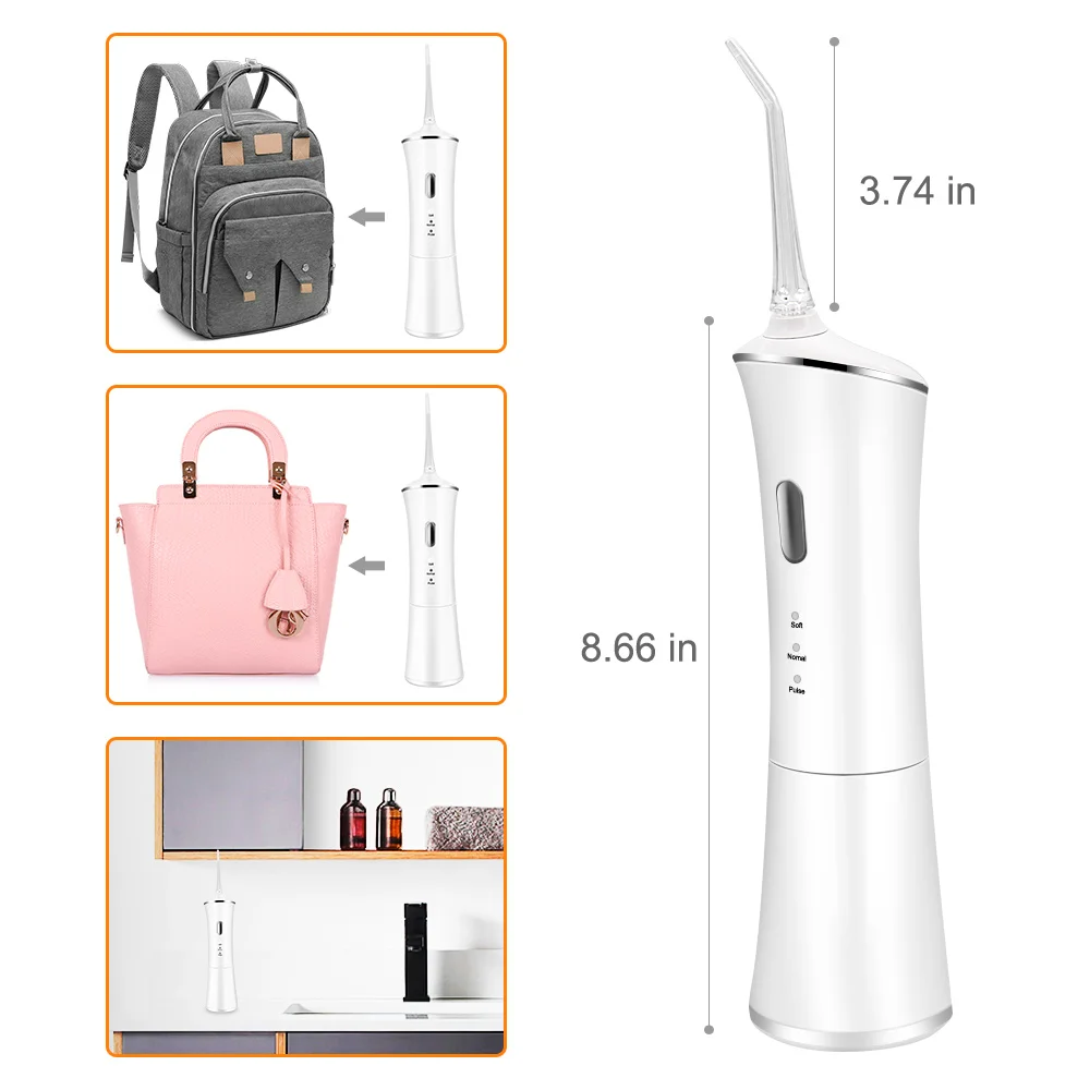 Ирригатор для полости рта струя воды обеспечивает давление воды от 40-90psi с 1400 импульсов в минуту. Глубокая очистка каждого уголка точно так, чтобы традиционная нить не досталась, удаляет пятна и остатки между зубными промежутками или десневыми сулькусами. Приносит вам Здоровье полости рта и свежее дыхание.